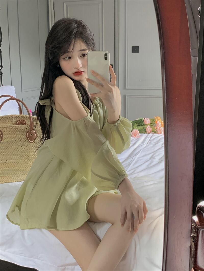 メッシュシャツ レディースサマー薄手 ロング ランタンスリーブ 夏物 ブラックストロベリース42326217889