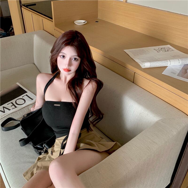 サマーショートストラップ ホルターブラックトップス 夏物 ヨーロピアン ブラックストロベリース88011038086