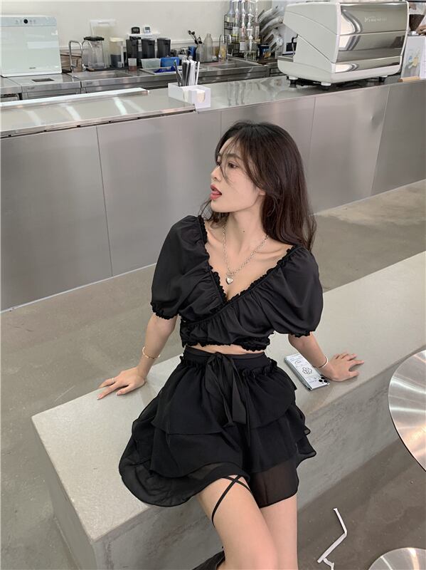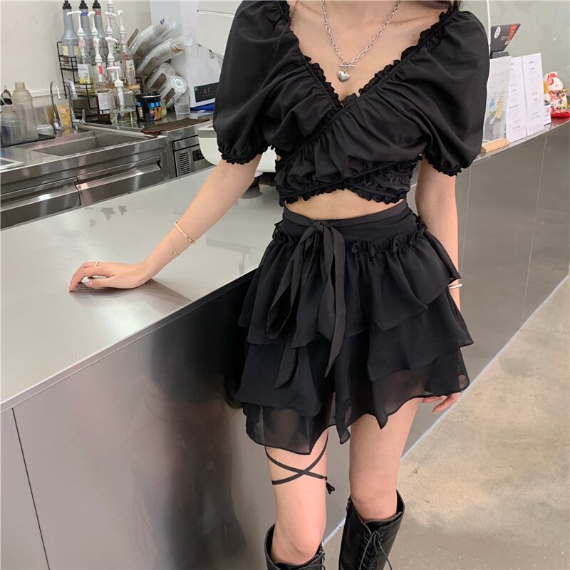 スカート ブラックAラインショートサマーハイウェストウェスト 夏物 ブラックストロベリース32600081558