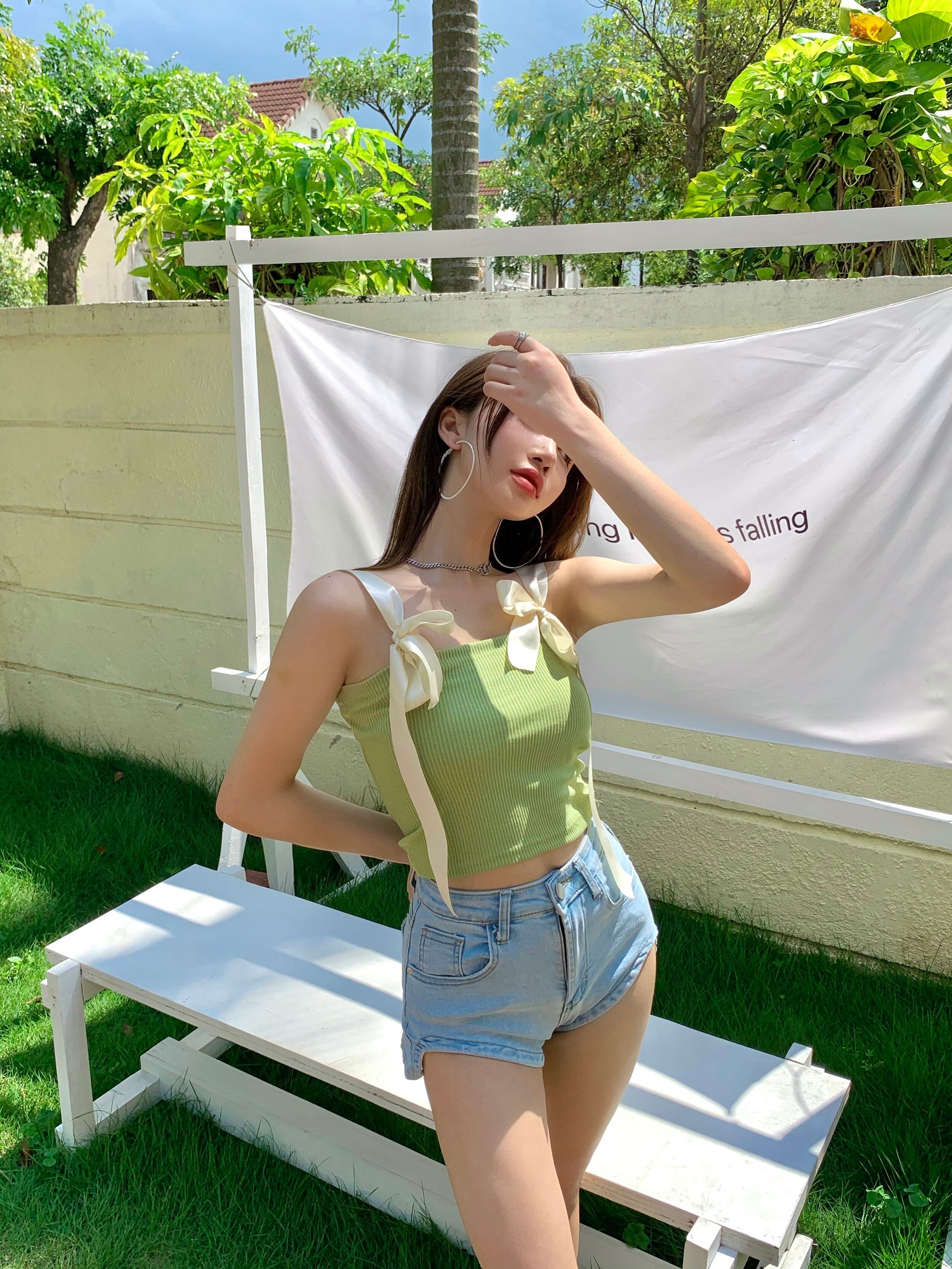 ニットサマーブラウス リボン 大人ガーリー スウィート キュート カジュアル 夏物 ブラックストロベリース82251714311