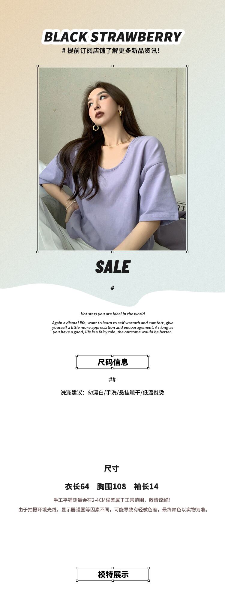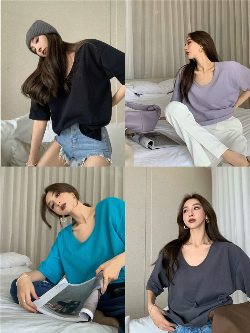 Tシャツ サマー薄手カジュアルルーズソリッド カラートップス 夏物 ソリッドカラー ブラックストロベリース82620914507