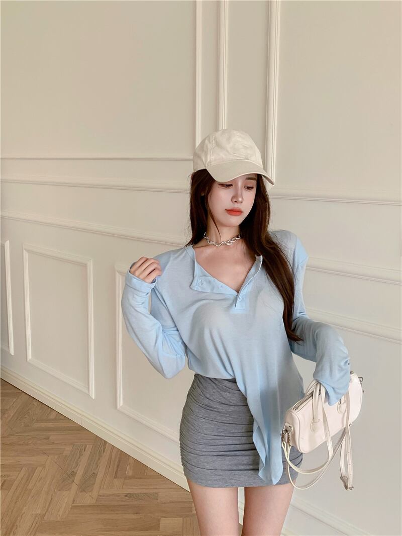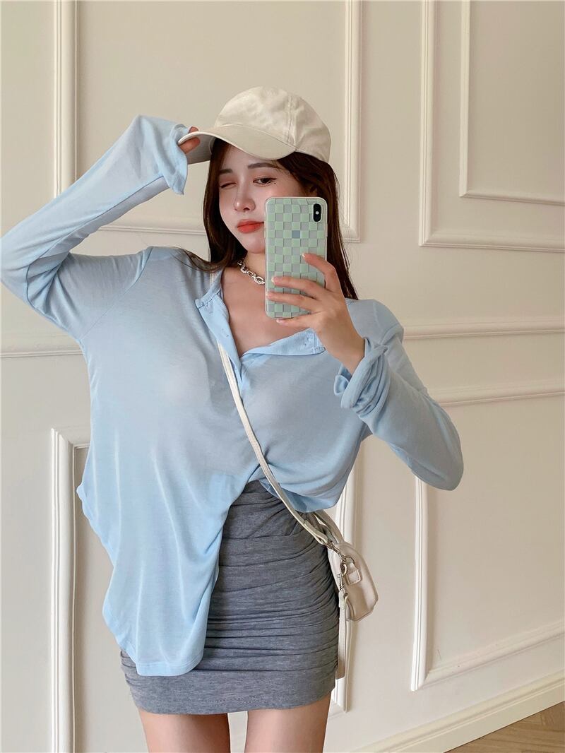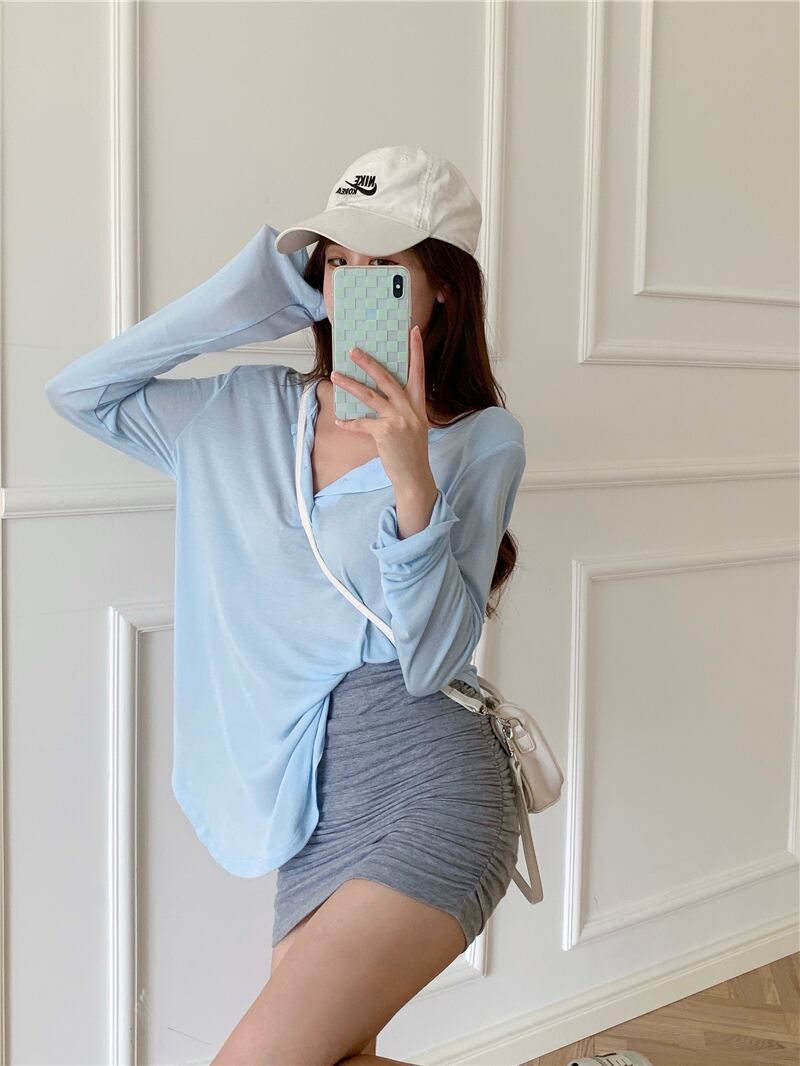 Tシャツ サマー薄手ブラウス カジュアルルーズVネックトップス ロング 夏物 ピュア ブラックストロベリース22016354952