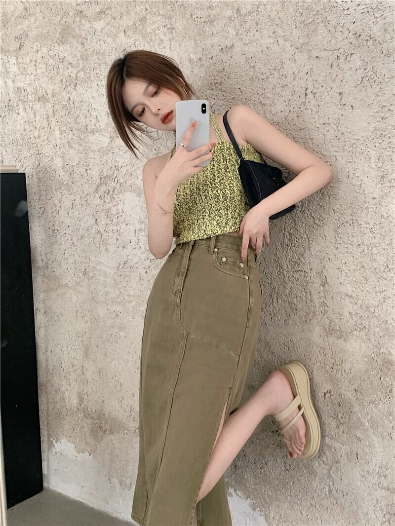 スタンダードスタイルスカート サマー薄手ハイウェストウェスト レトロ 夏物 ブラックストロベリース97375184606