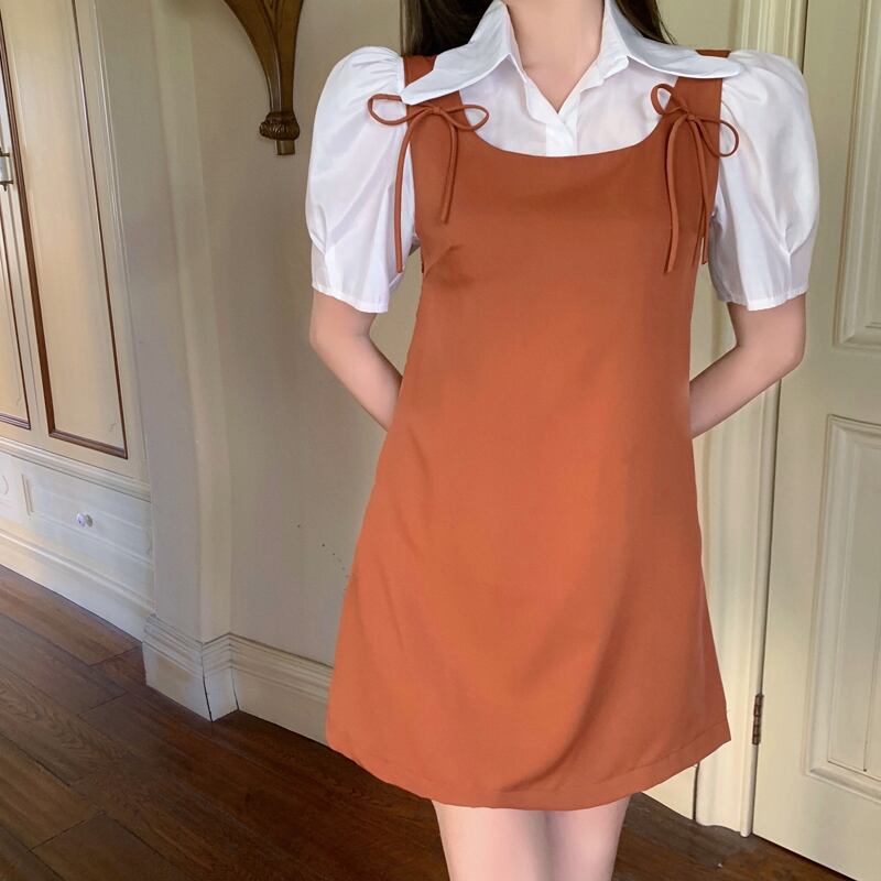 ドレス リボンショートスカート サマー 夏物 ブラックストロベリース64298789766