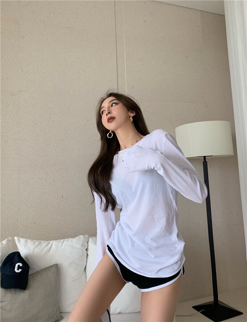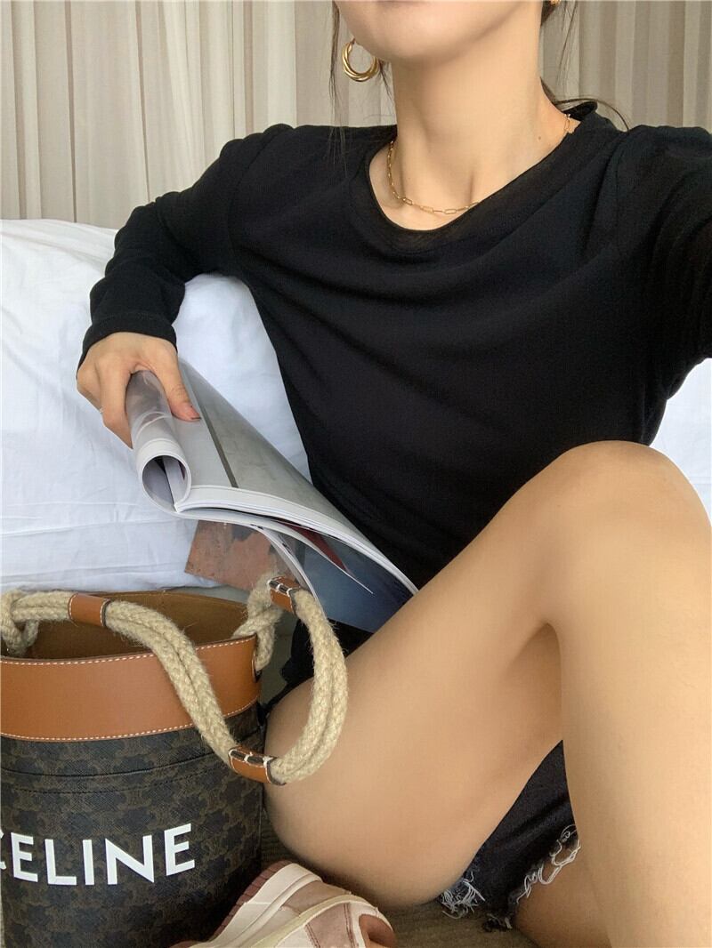 薄手ブラウス Tシャツ サマースリムトップス ロング 夏物 ブラックストロベリース42011655472