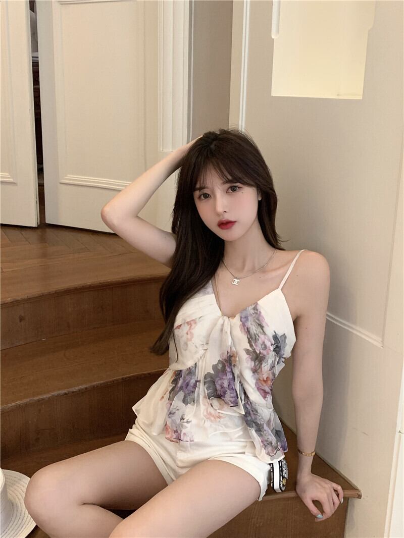 サマースタイルスタンダードショートラッフルプリント柄トップス レトロ 夏物 ピュア ブラックストロベリース80649278041