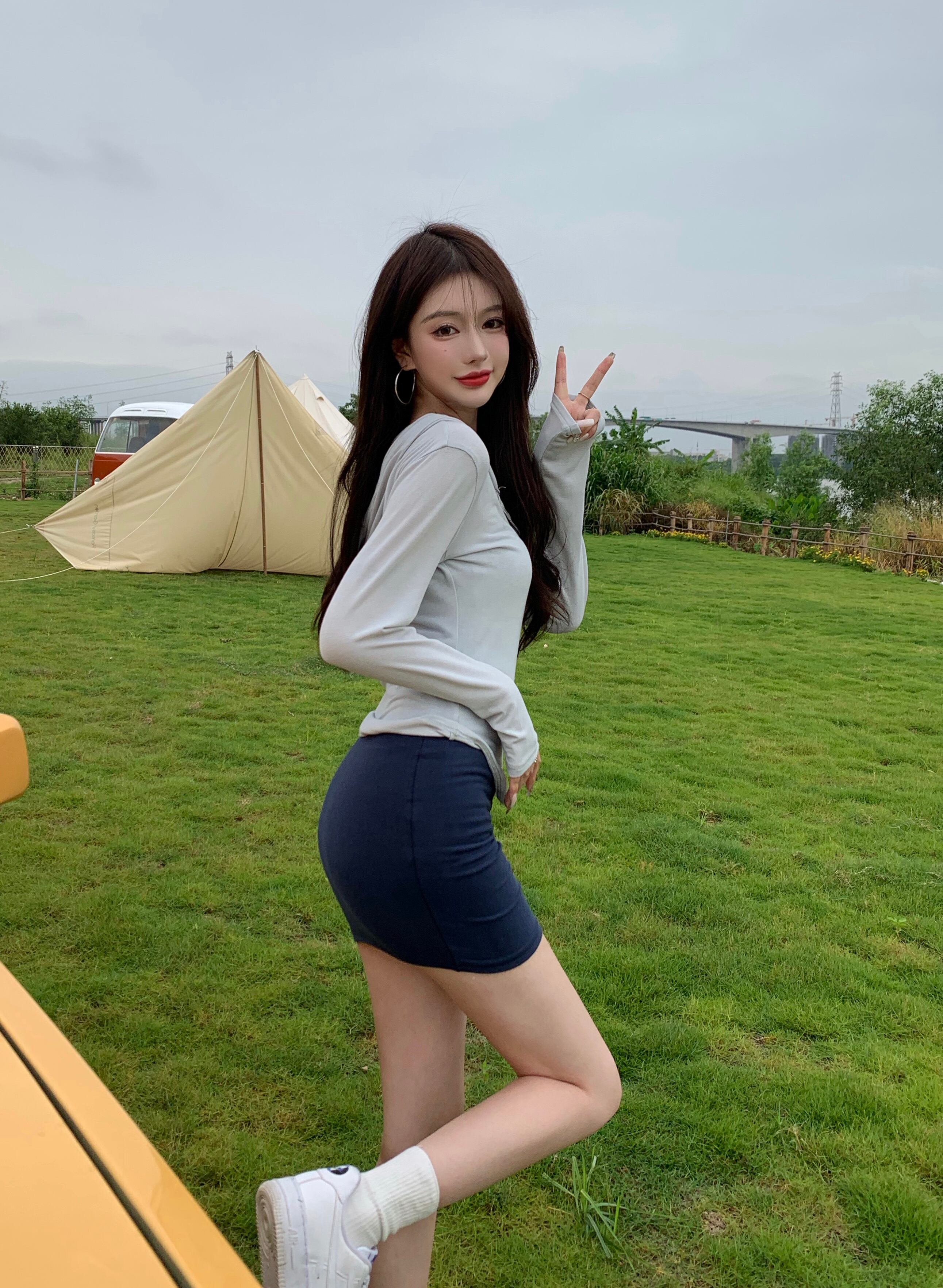 フードTシャツ サマー薄手ブラウス ショートスキニー長袖スリーブトップス ロング 夏物 ピュア ブラックストロベリース55221853123