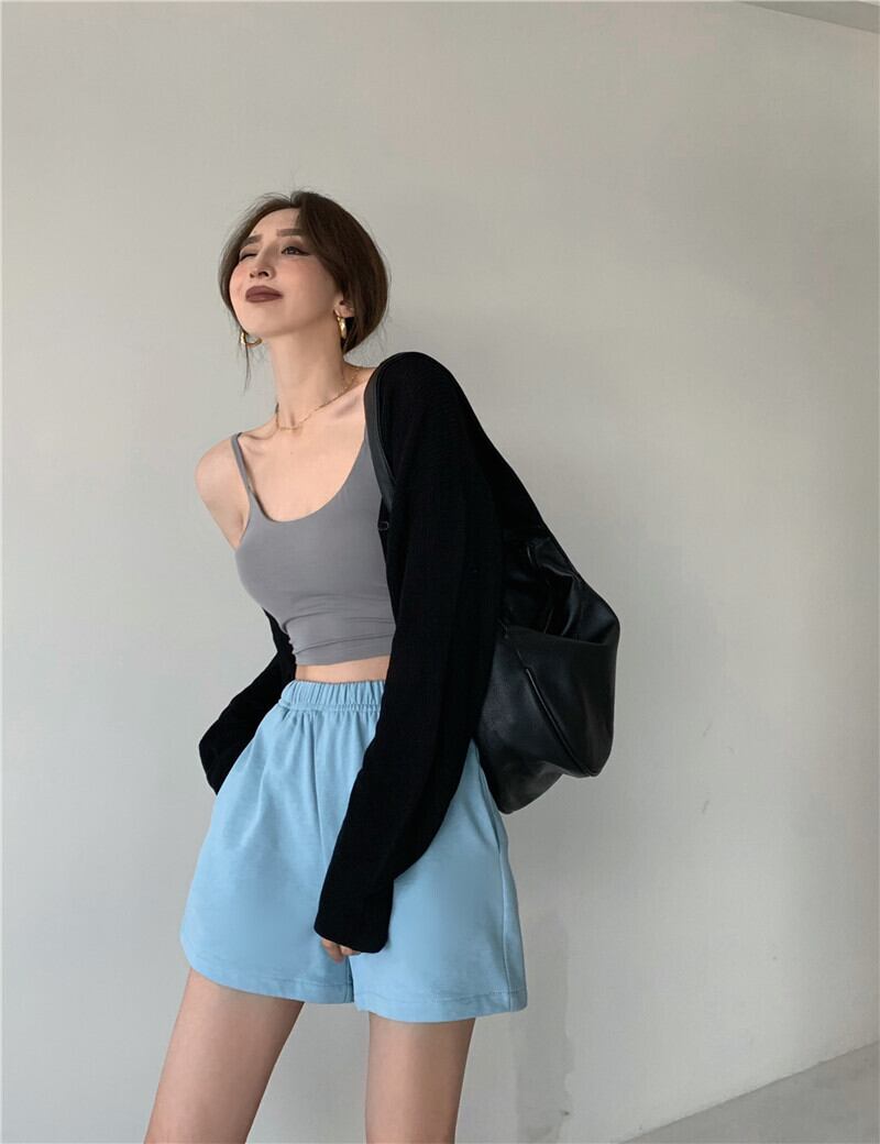 カジュアルパンツ サマー薄手Aラインショーツ ハイウェストウェストルーズワイドレッグ 夏物 ブルマー ワイドパンツ ブラックストロベリース84491009271