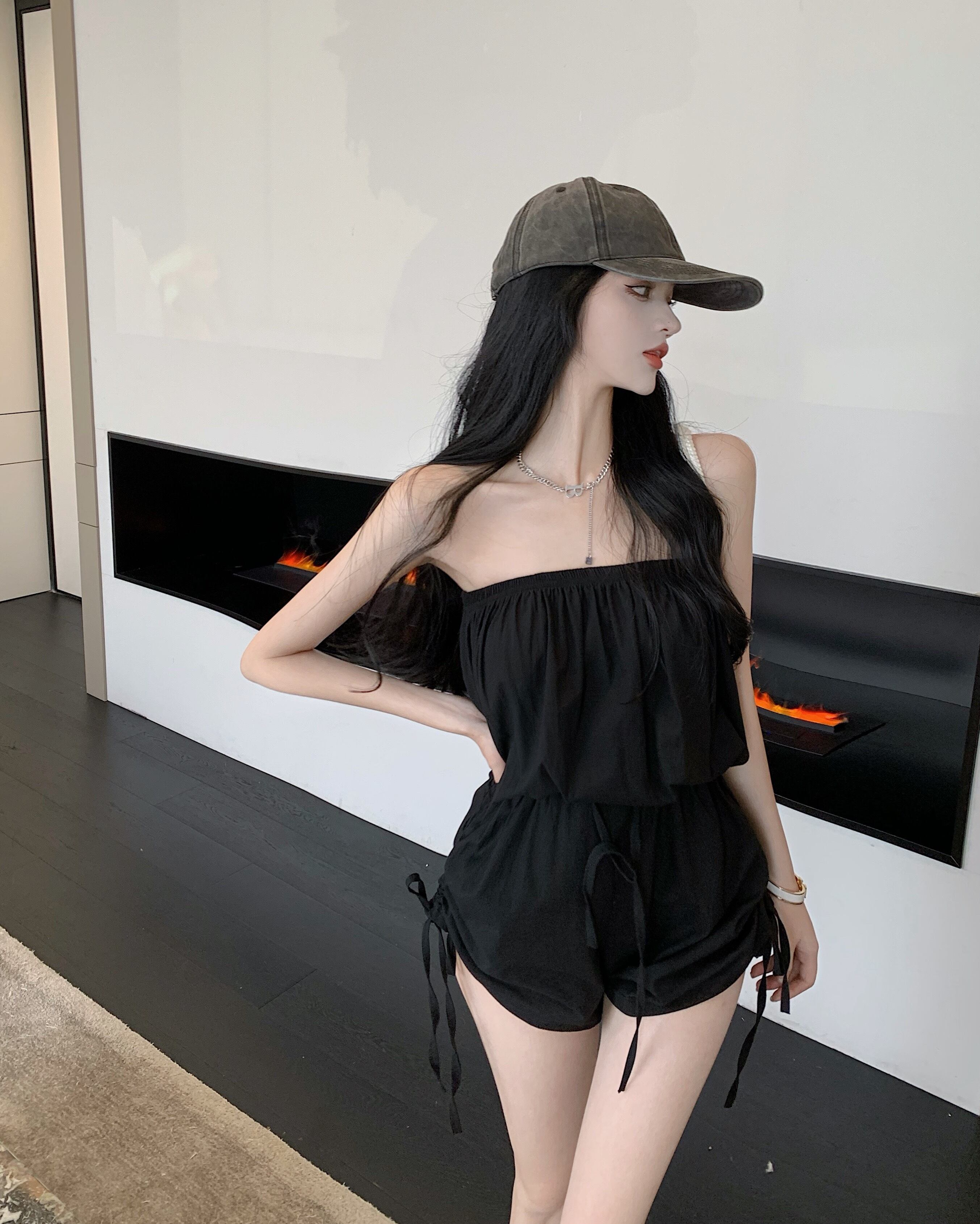 トップス ジャンプスーツ オールインワン 薄手ブラックショーツ サマーパンツ 夏物 ブルマー ブラックストロベリース85308038469