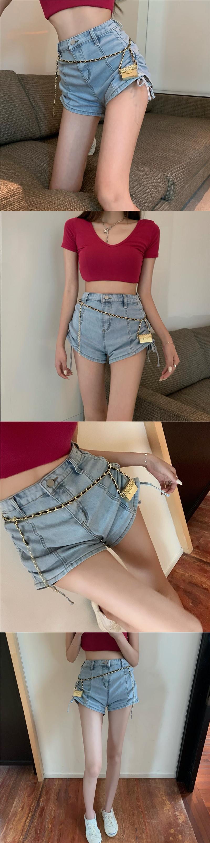 ジーンズ ウェストブラックショーツ サマーパンツ ギャザーワイドレッグ 夏物 ブルマー ワイドパンツ ブラックストロベリース5330432761
