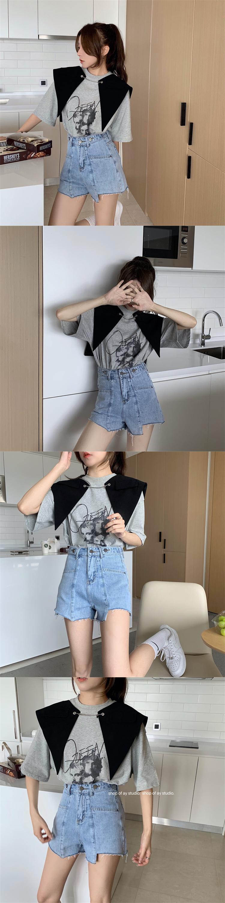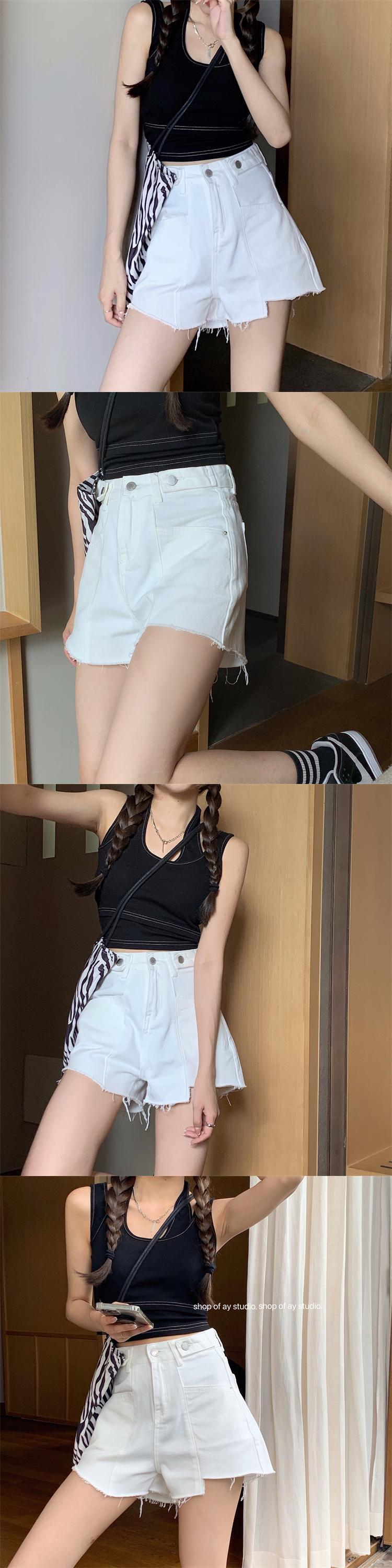 ジーンズ レディースハイウェストウェストルーズショーツ サマー薄手パンツ 夏物 ブルマー ブラックストロベリース51793374311