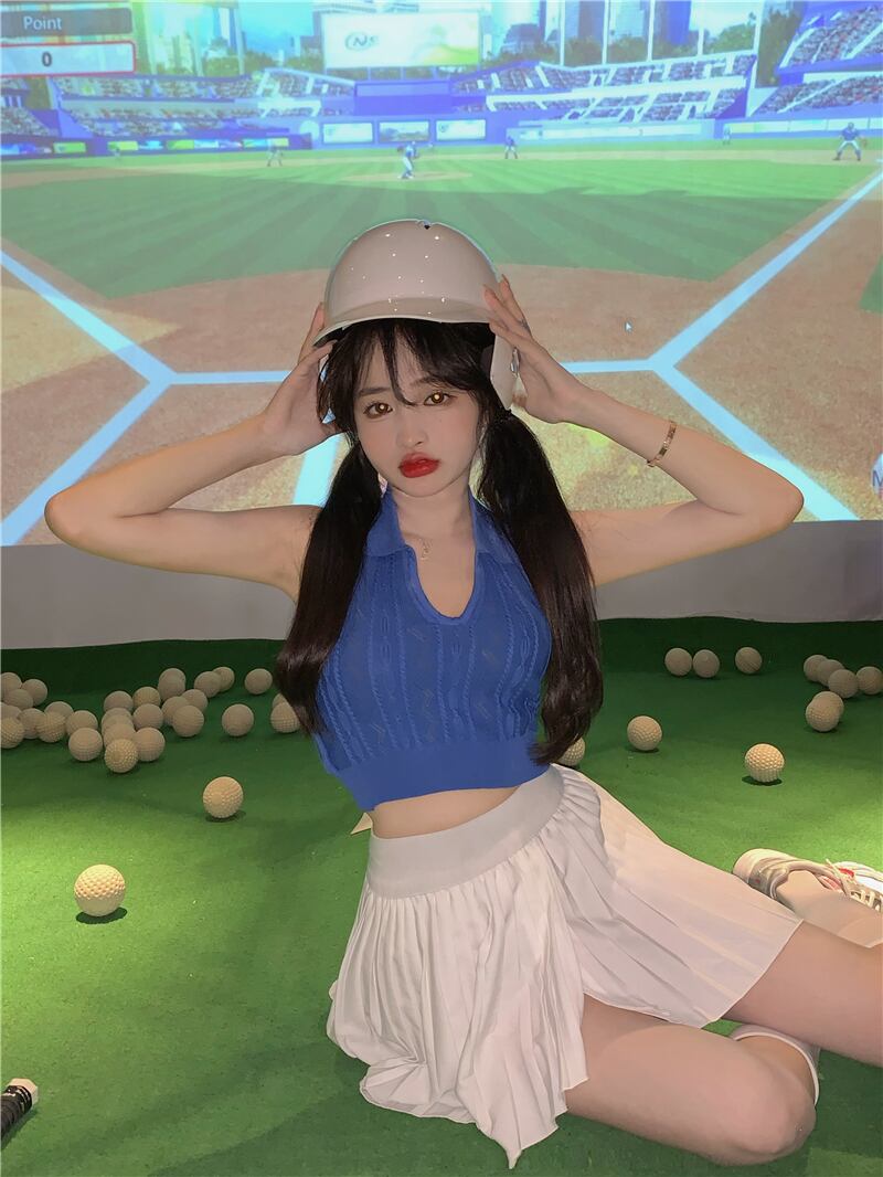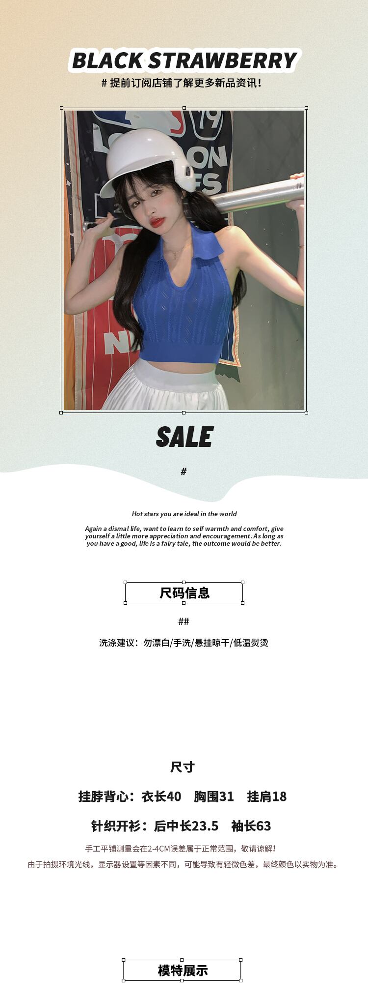 ホルターニットサマーショートトップス 夏物 ヨーロピアン ブラックストロベリース28473868899