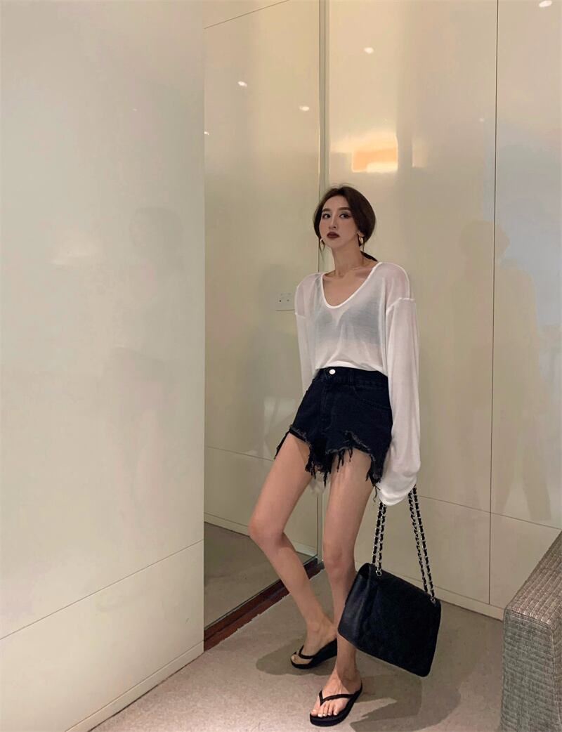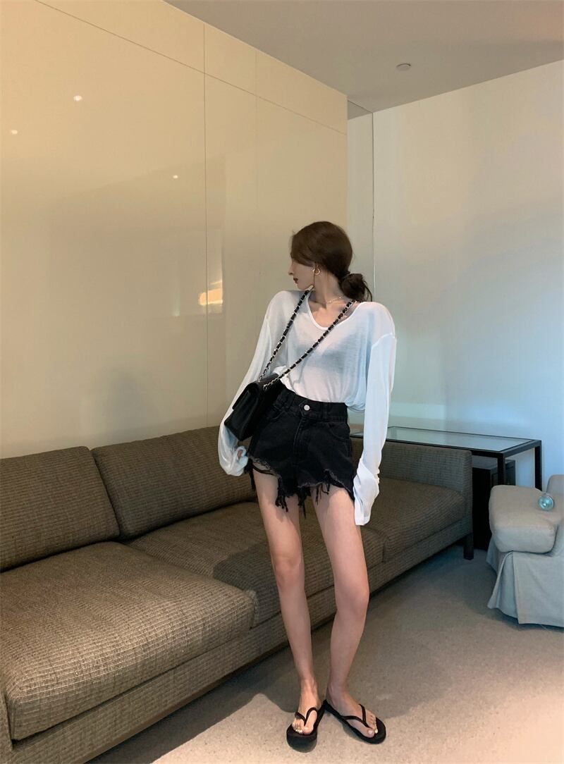 Tシャツ シャツ ルーズホワイトサマーカラー薄手トップス ロング 夏物 ブラックストロベリース64995274251
