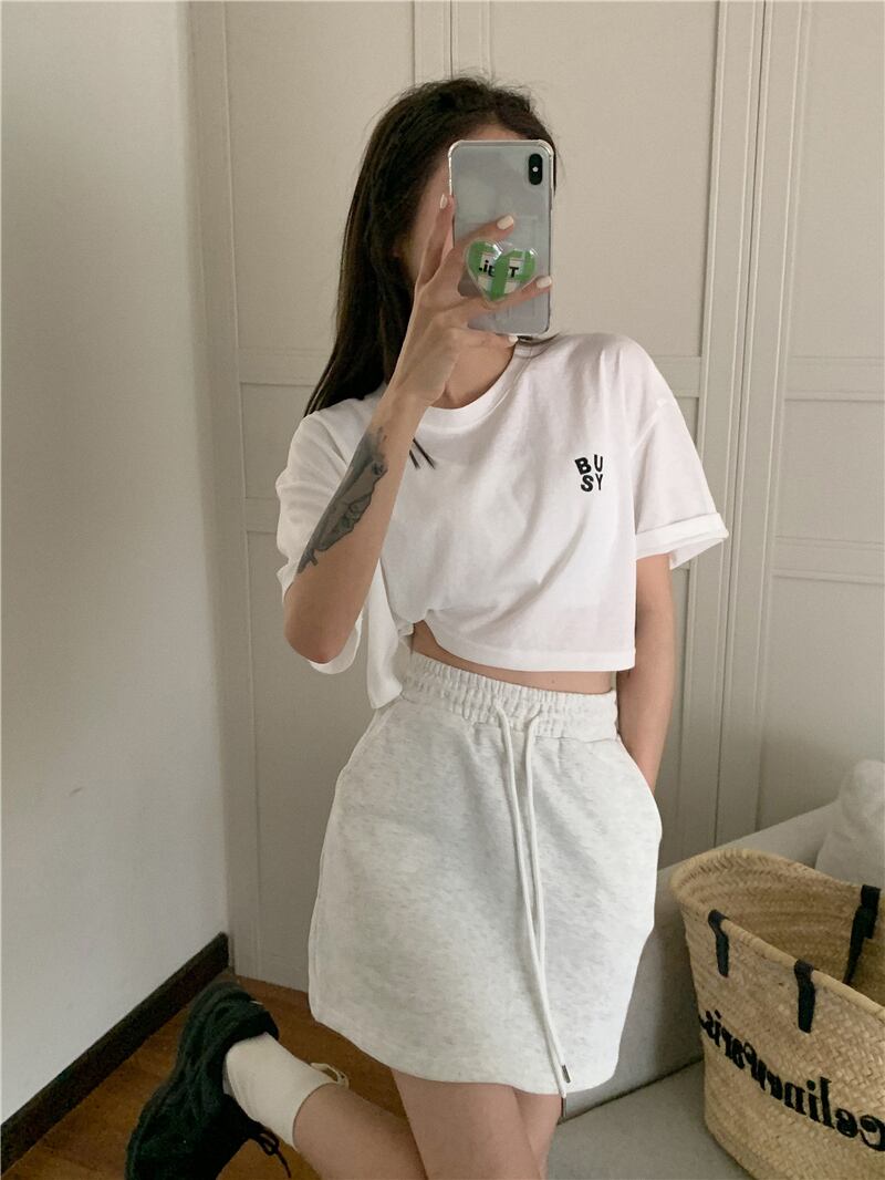 色:白いTシャツ,黒いTシャツ,ホワイトグレーのスカート,黒スカート