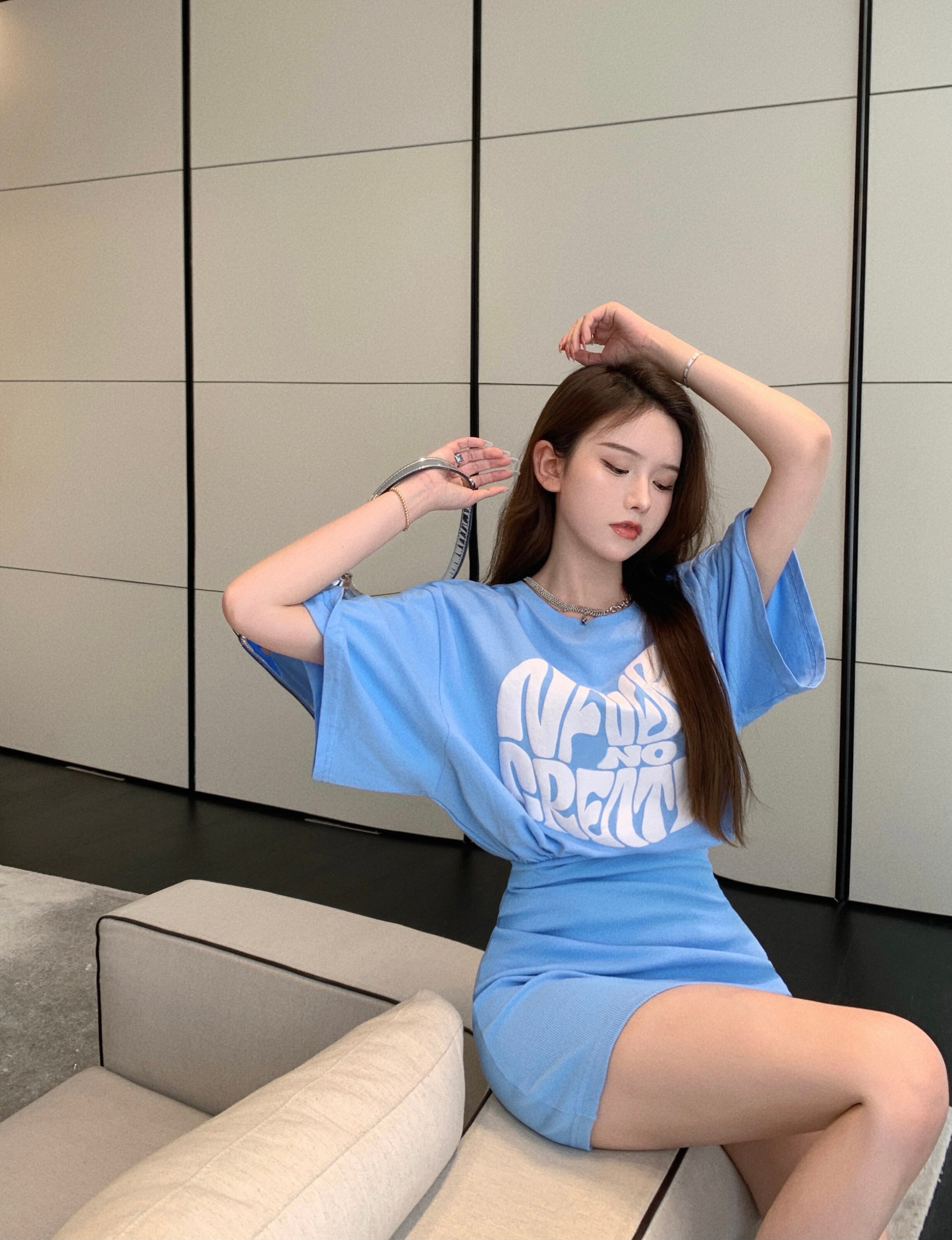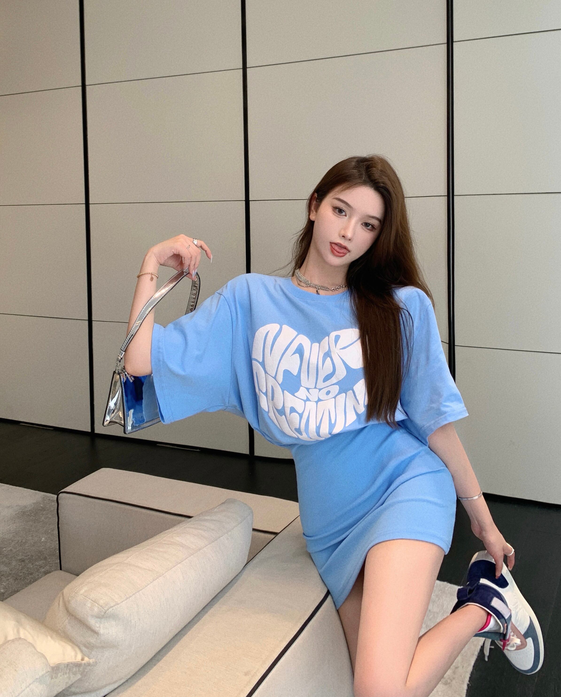 Tシャツ ドレス ショートスカート サマーブルー 夏物 ブラックストロベリース99763063718