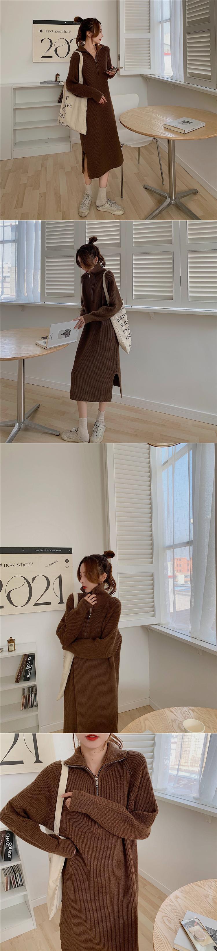 ニットセーター ドレス ルーズ長袖スリーブスカート スプリング ロング ピンク 春物 ブラックストロベリース38243096804