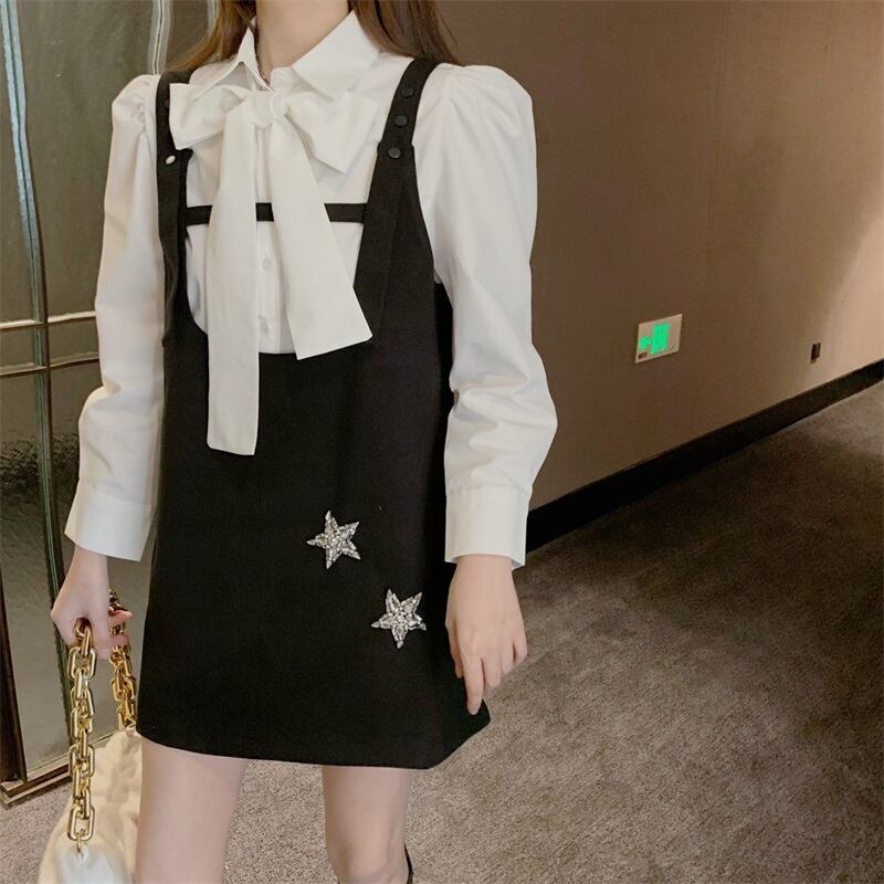 ドレス ブラックルーズスタンダードショートスカート スプリング薄手 レトロ 春物 スクウェア ブラックストロベリース94913166125