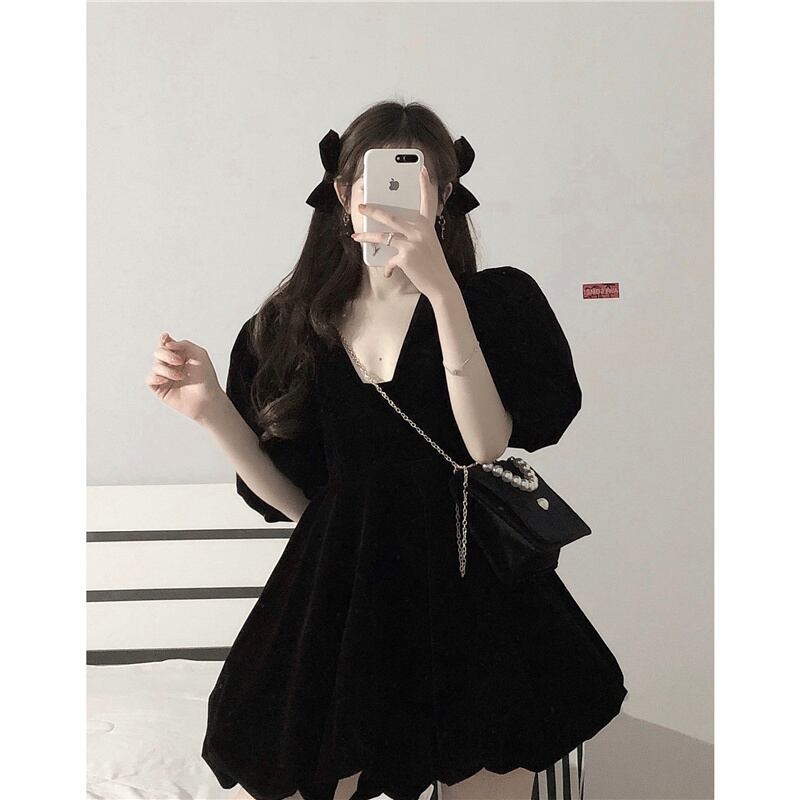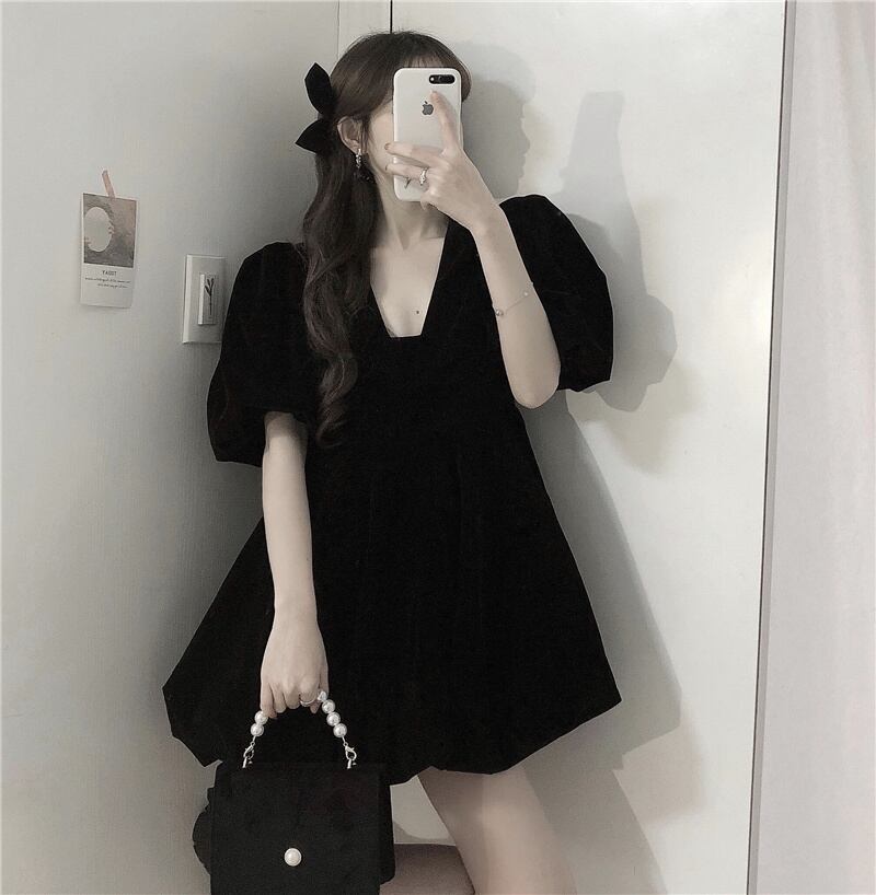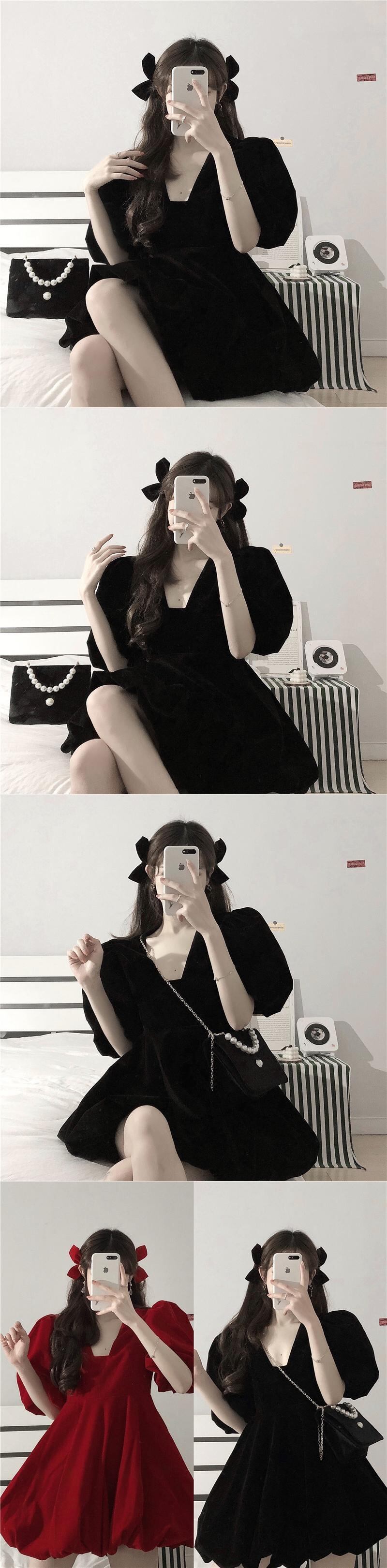 ドレス ルーズ薄手スタンダードレッドスカート スプリングベルベットショート レトロ 春物 ブラックストロベリース36554797262