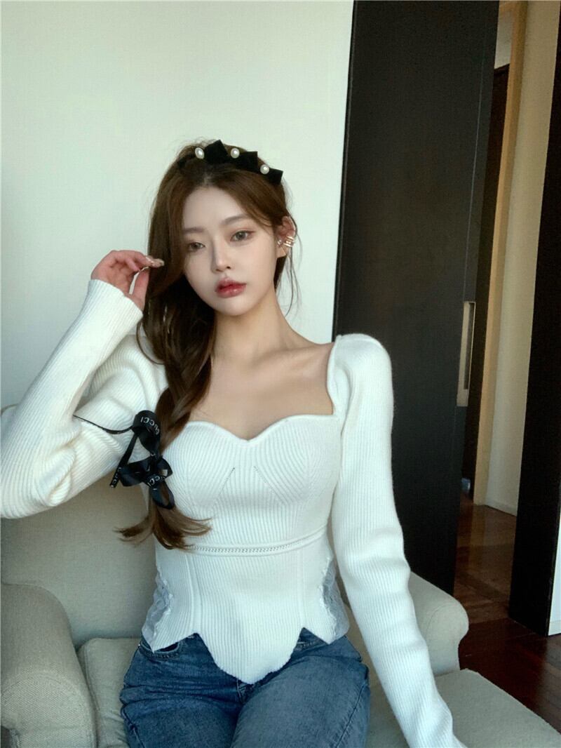 ニットセーター ブラックスプリングトップス ロング 春物 スクウェア ブラックストロベリース59913920307