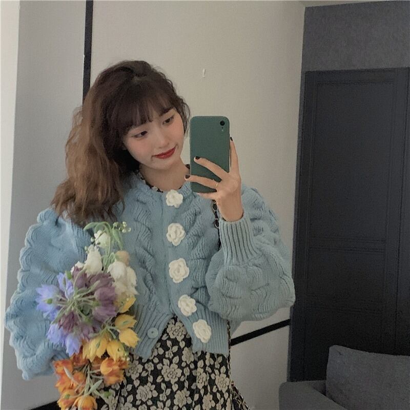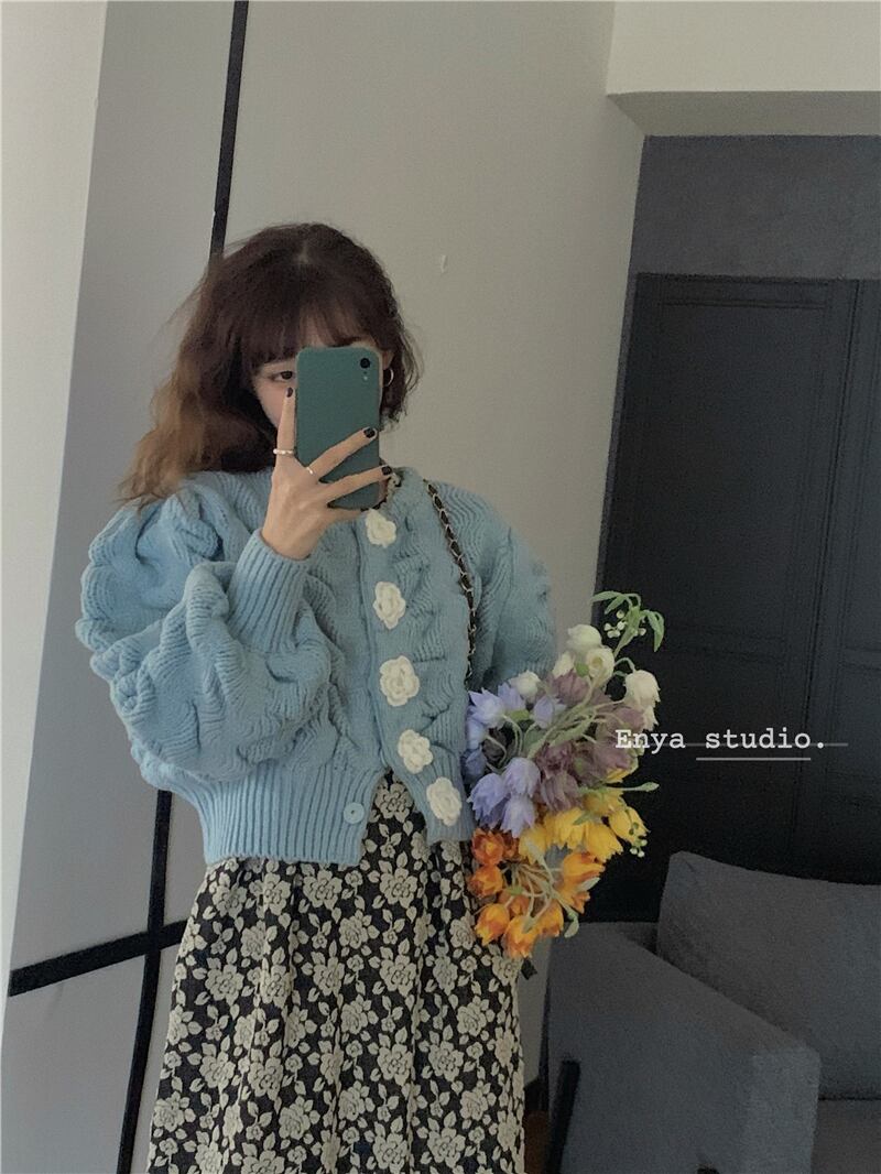 ニットセーター カーディガンジャケット スプリングオータムブルースタンダードルーズショートトップス ロング レトロ 春物 秋物 ブラックストロベリース79171886918