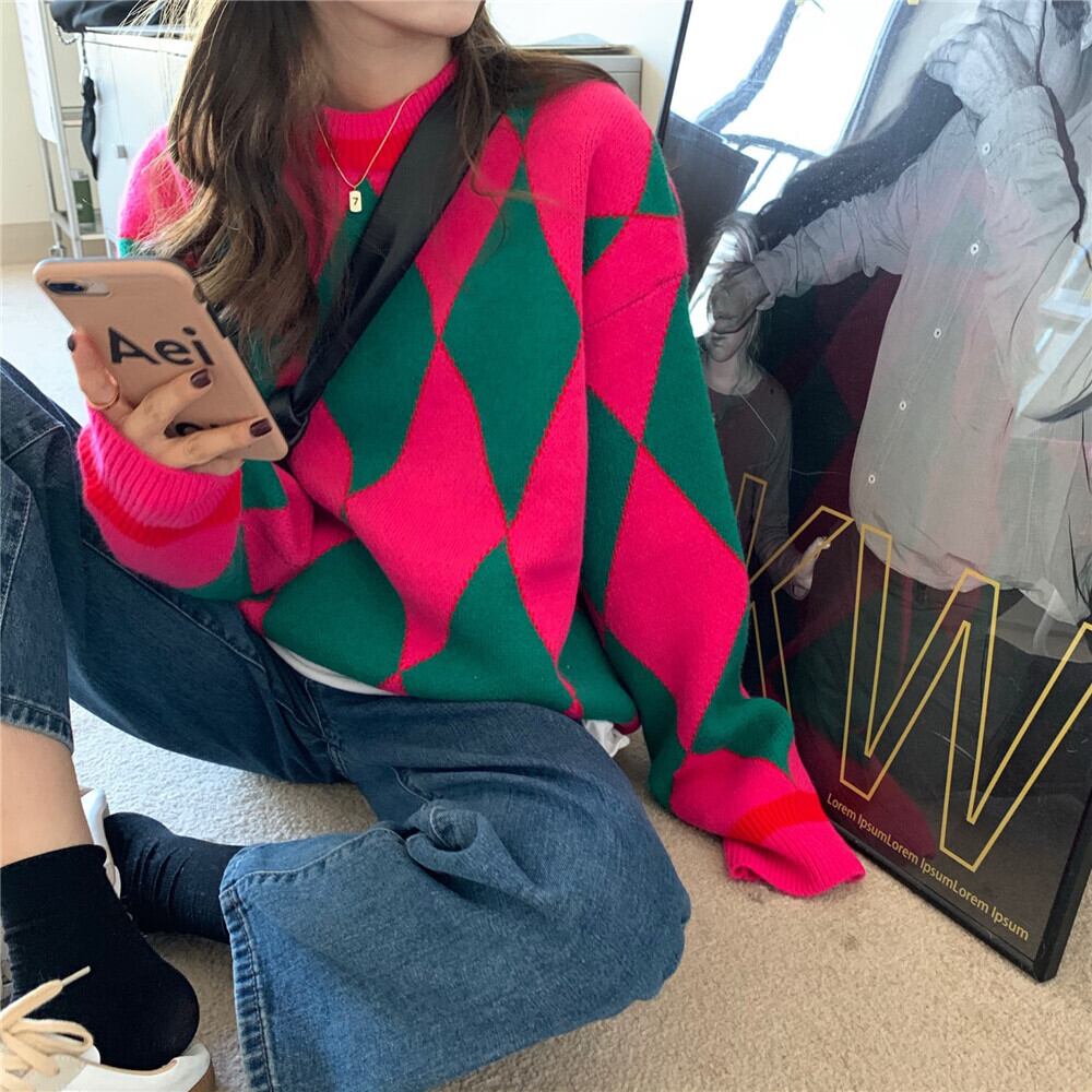 セーター ジャケット スタンダードレッドスプリングオータムラウンドネックトップス レトロ 春物 秋物 Oネック ブラックストロベリース19968818654