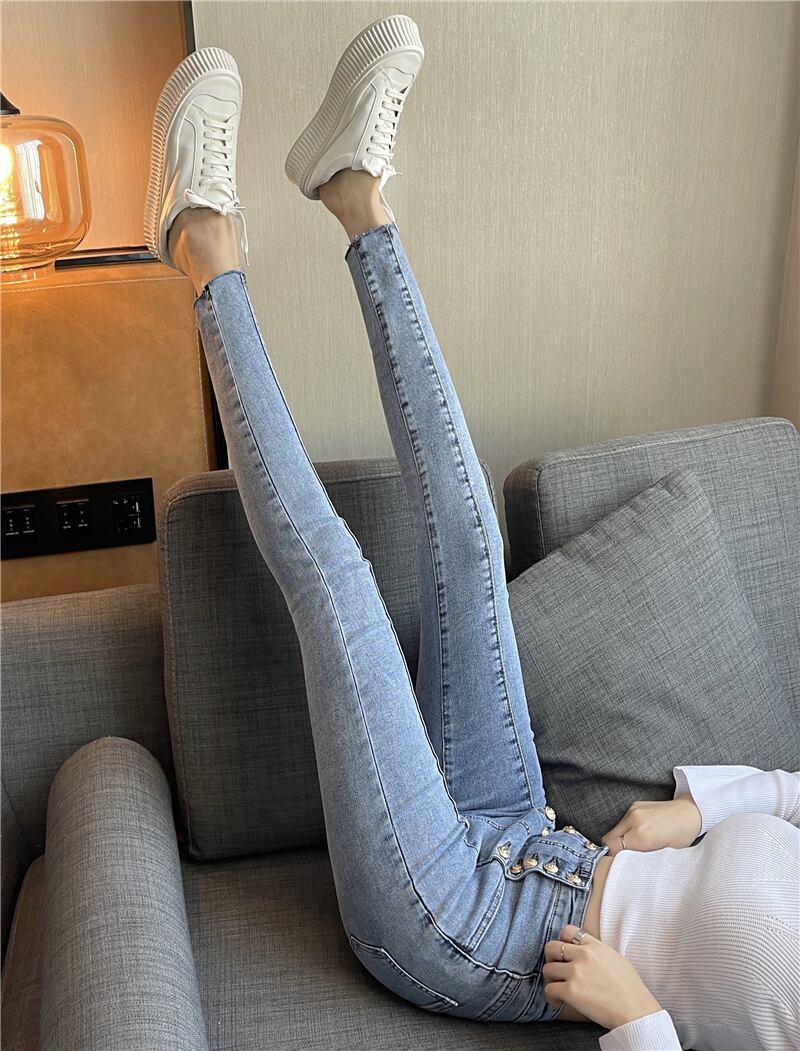 ジーンズ ハイウェスト薄手スプリングパンツ レッド 春物 ブラックストロベリース78045100151