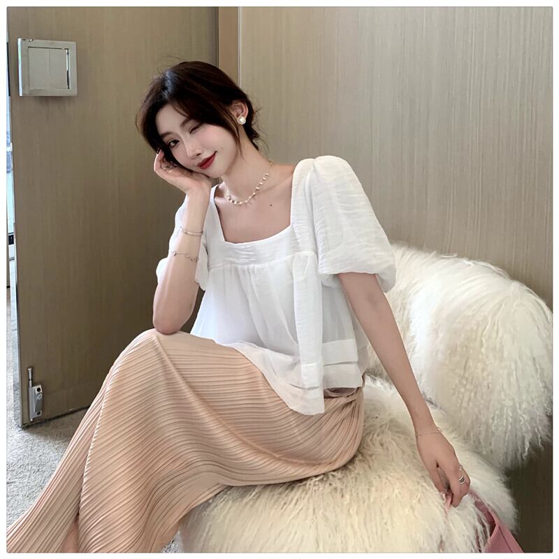 シャツ スリーブホワイトサマー薄手トップス 夏物 ブラックストロベリース84989072782