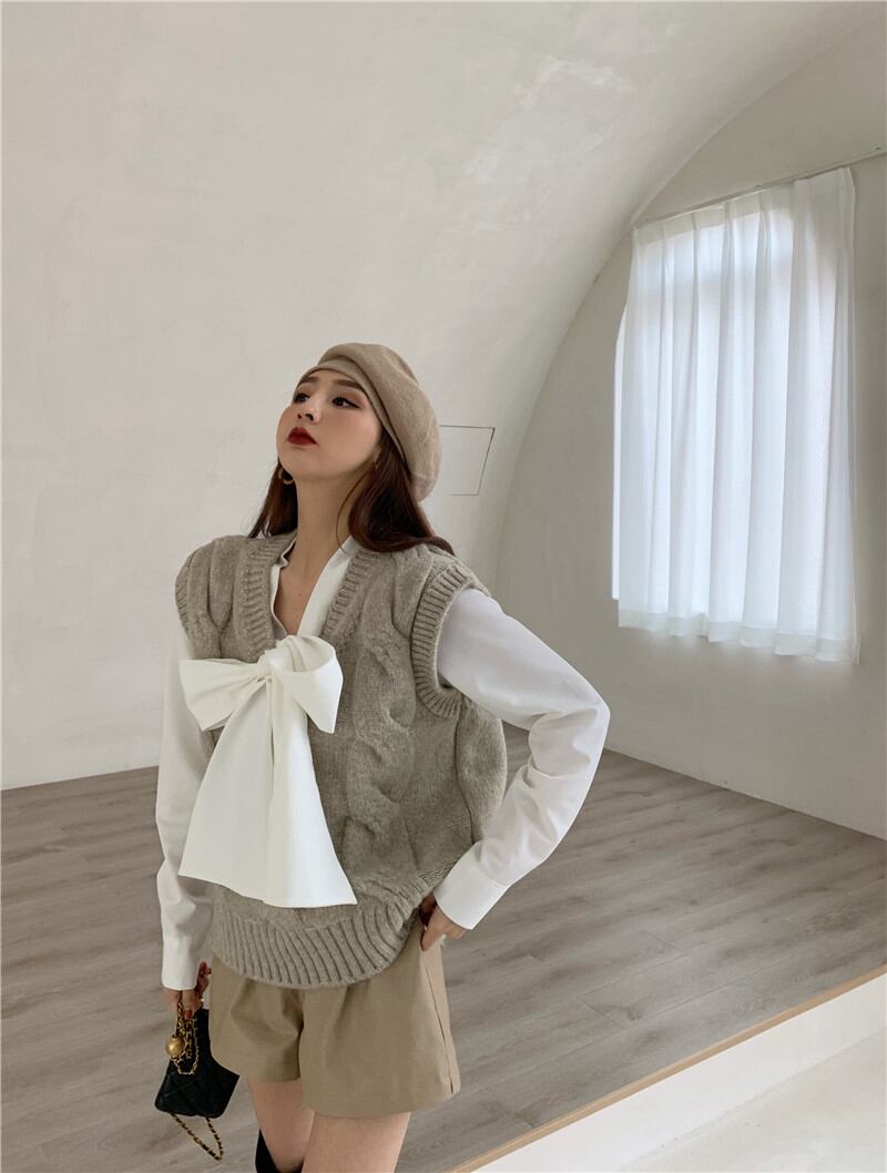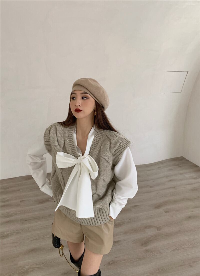 シャツ リボンスプリングホワイトトップス ロング 春物 ブラックストロベリース38427648087