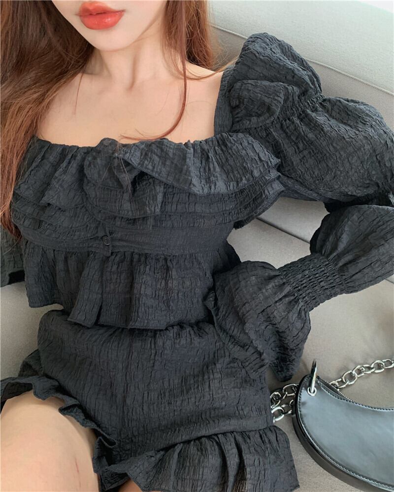 ショートスタイルブラウス シャツ サマー薄手ブラックカラートップス ロング 夏物 スクウェア ブラックストロベリース38791959287