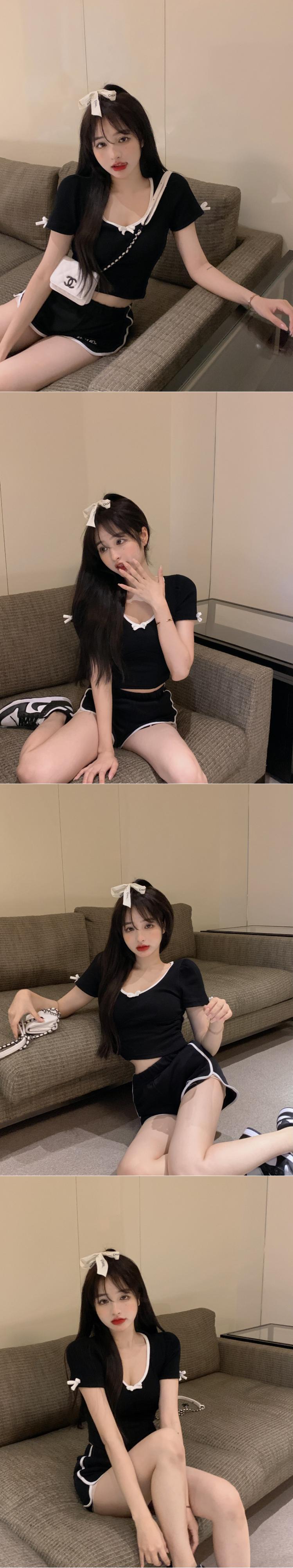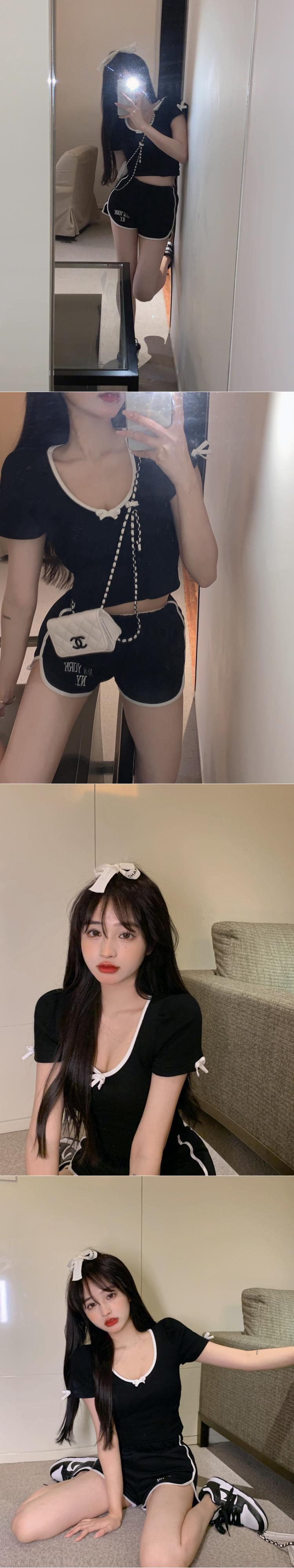リボンTシャツ サマーショートスリムハイウェストウェスト半袖スリーブトップス ハーフスリーブ 大人ガーリー スウィート キュート カジュアル 夏物 ブラックストロベリース32637148748