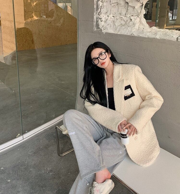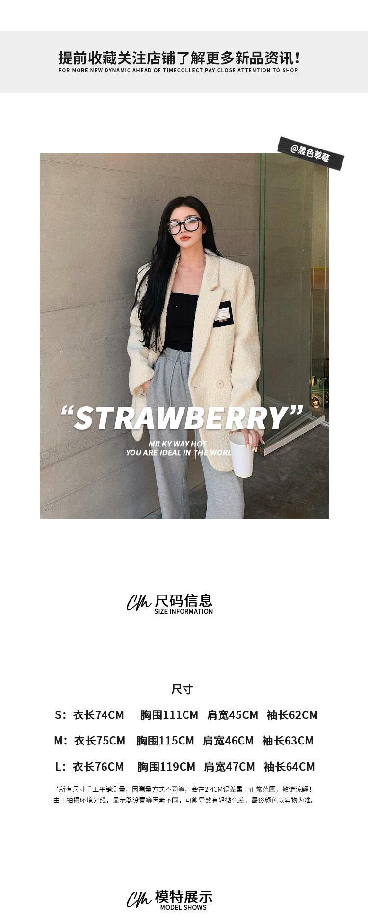 ブレザー ルーズスタイルホワイトコート スプリングオータム 春物 秋物 ブラックストロベリース73632517020