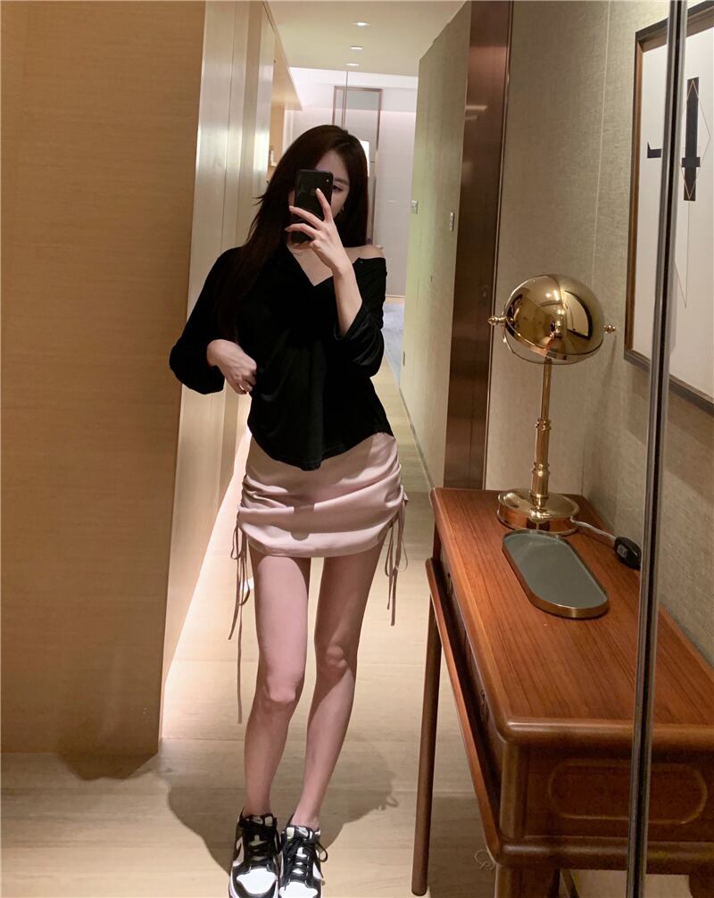 スカート ギャザーハイウェストウェスト薄手サマー ピンク 夏物 ブラックストロベリース26494469088