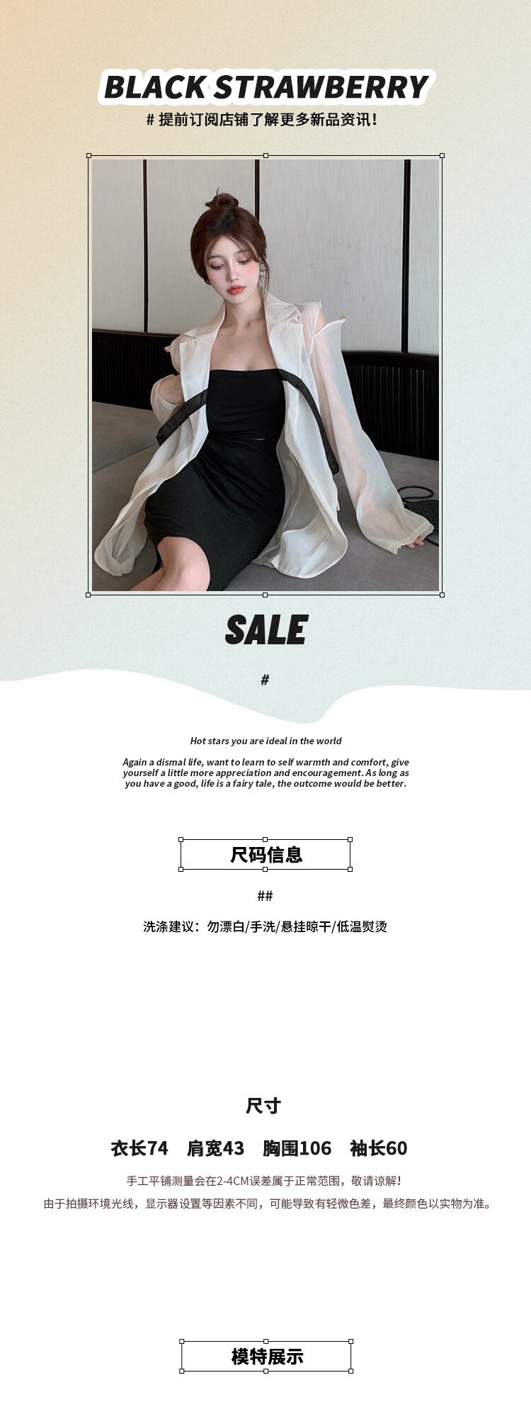 メッシュジャケット サマー薄手スタイルトップス ロング 夏物 オフショルダー ブラックストロベリース85356988196