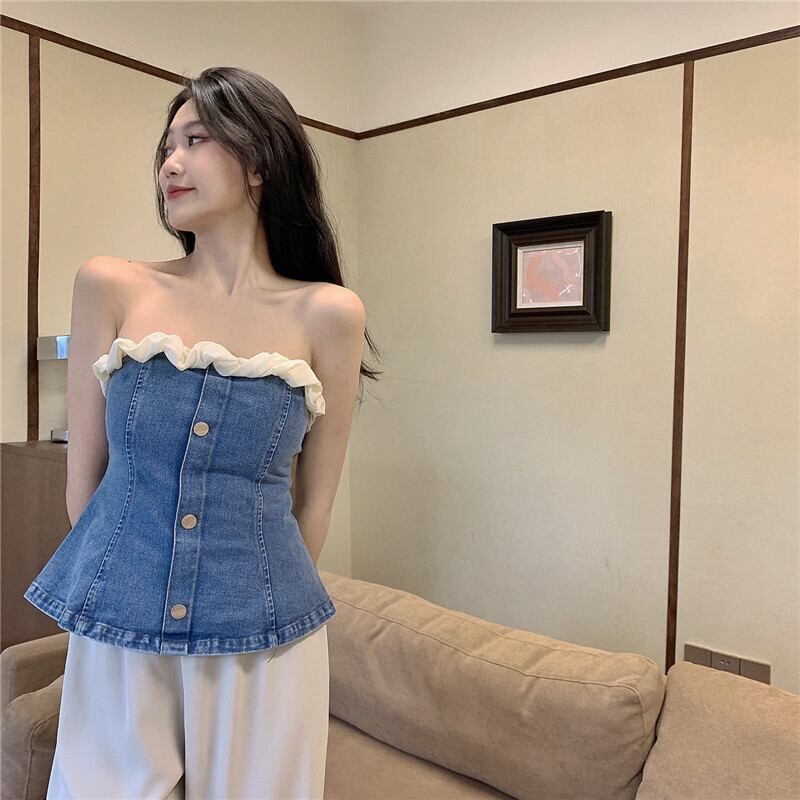 トップス サマーショートスタイルストラップレス薄手ブラ 夏物 ピュア ブラックストロベリース78447721562
