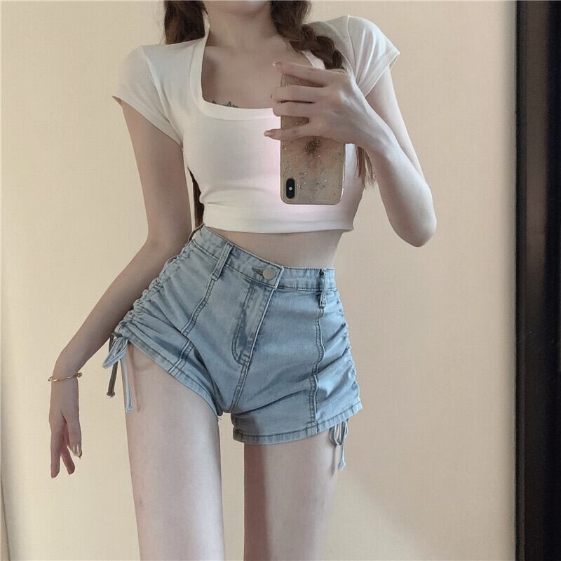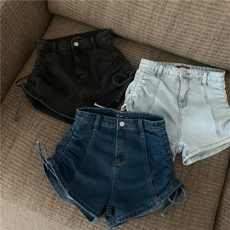 ジーンズ ウェスト薄手ショートスカート サマーパンツ ワイドレッグAライン 夏物 ワイドパンツ ブラックストロベリース12187876410