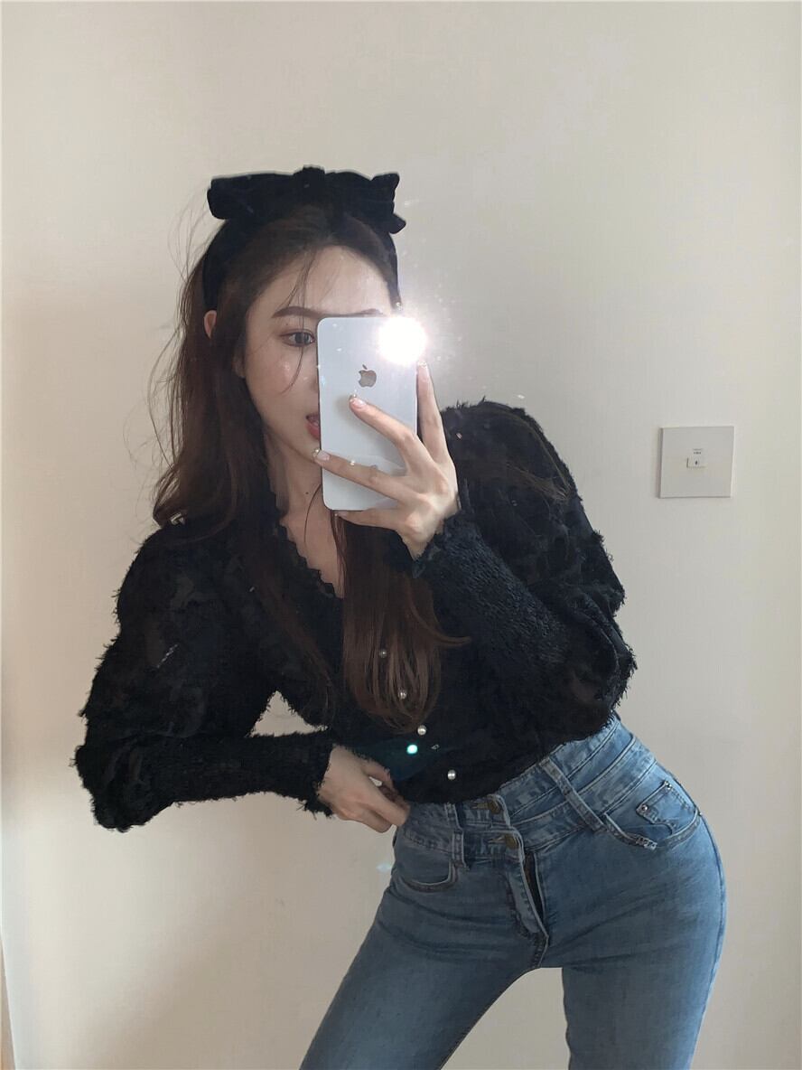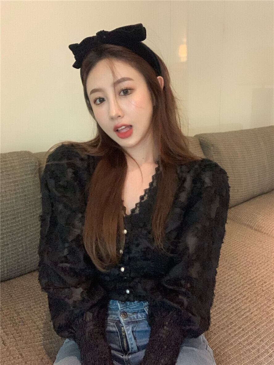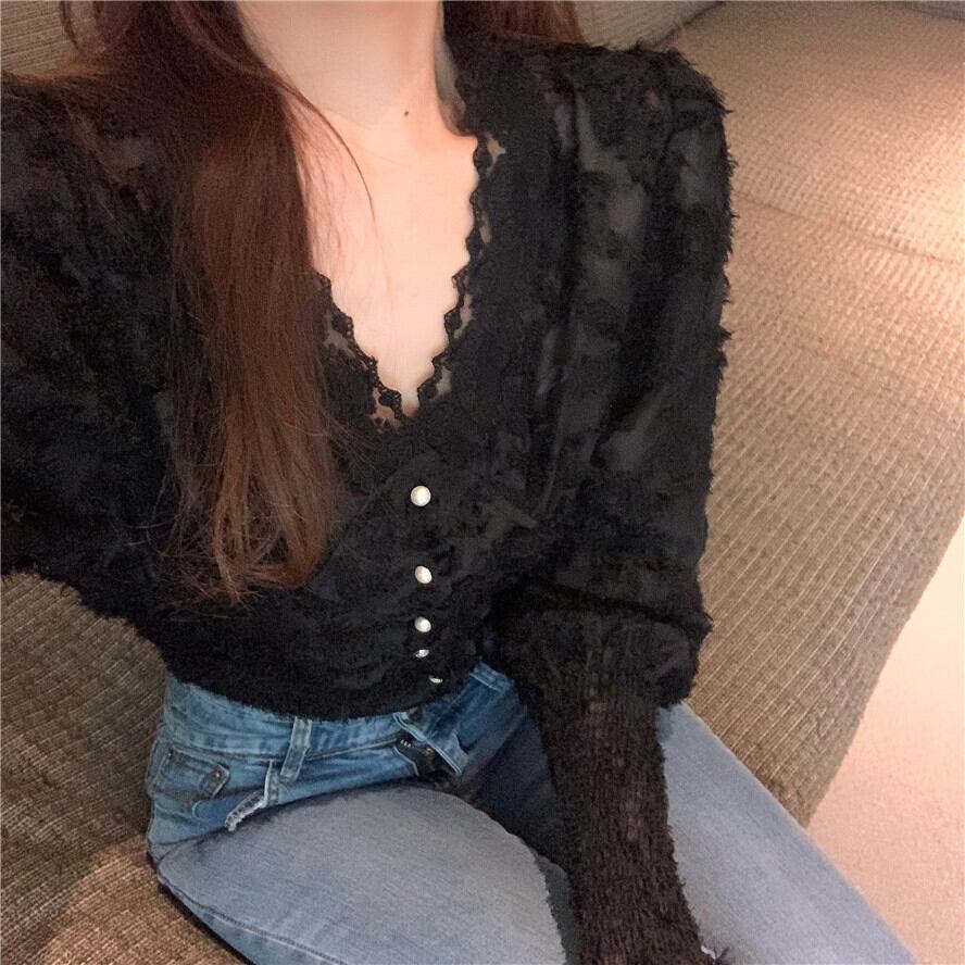 レースシフォンスプリングトップス ロング 春物 ブラックストロベリース11862886994