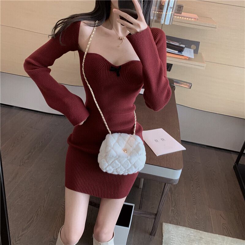 ニットドレス スプリングレッドスカート ロング 春物 ブラックストロベリース24837710274