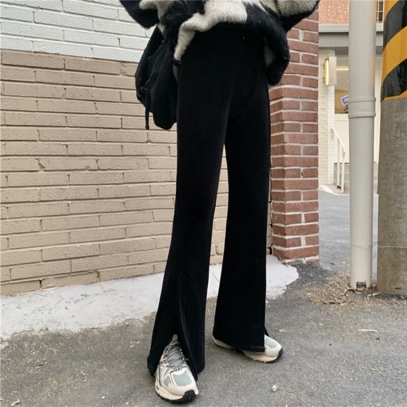 ベルベットパンツ スプリングオータムブラックハイウェストウェストルーズスリットカジュアル 春物 秋物 ブラックストロベリース81243313799