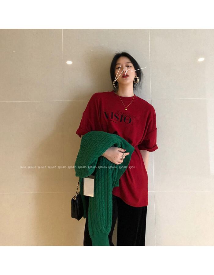 Tシャツ シャツ ルーズレッドスプリングオータムトップス 春物 秋物 ブラックストロベリース44183446904