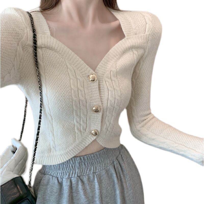 ニットセーター Vネックショートトップス スプリングスリムグレーカーディガンジャケット 春物 ブラックストロベリース40272635968