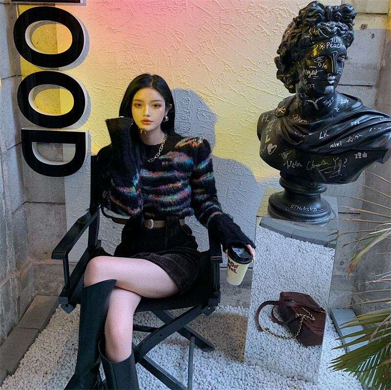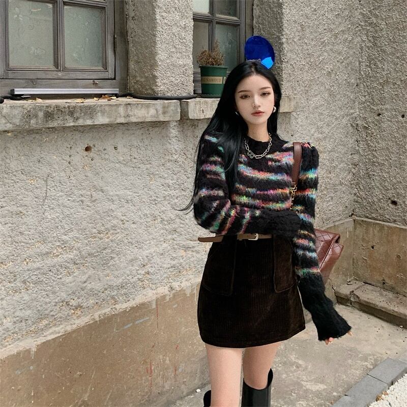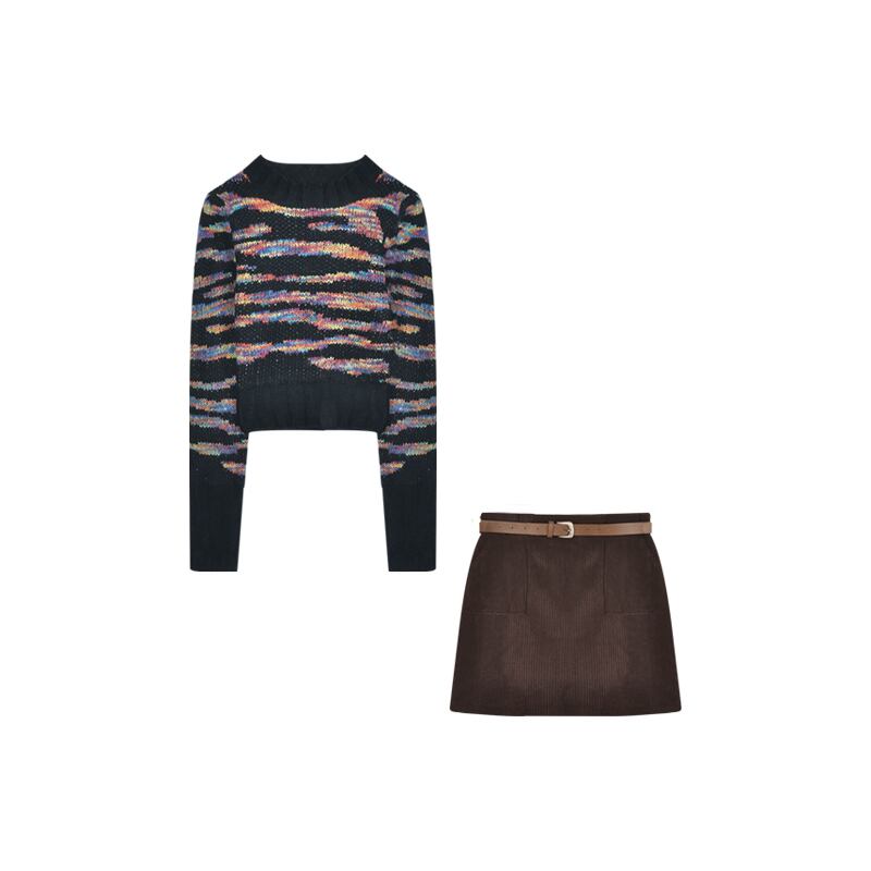 色:セーター,ハーフスカート+ベルト