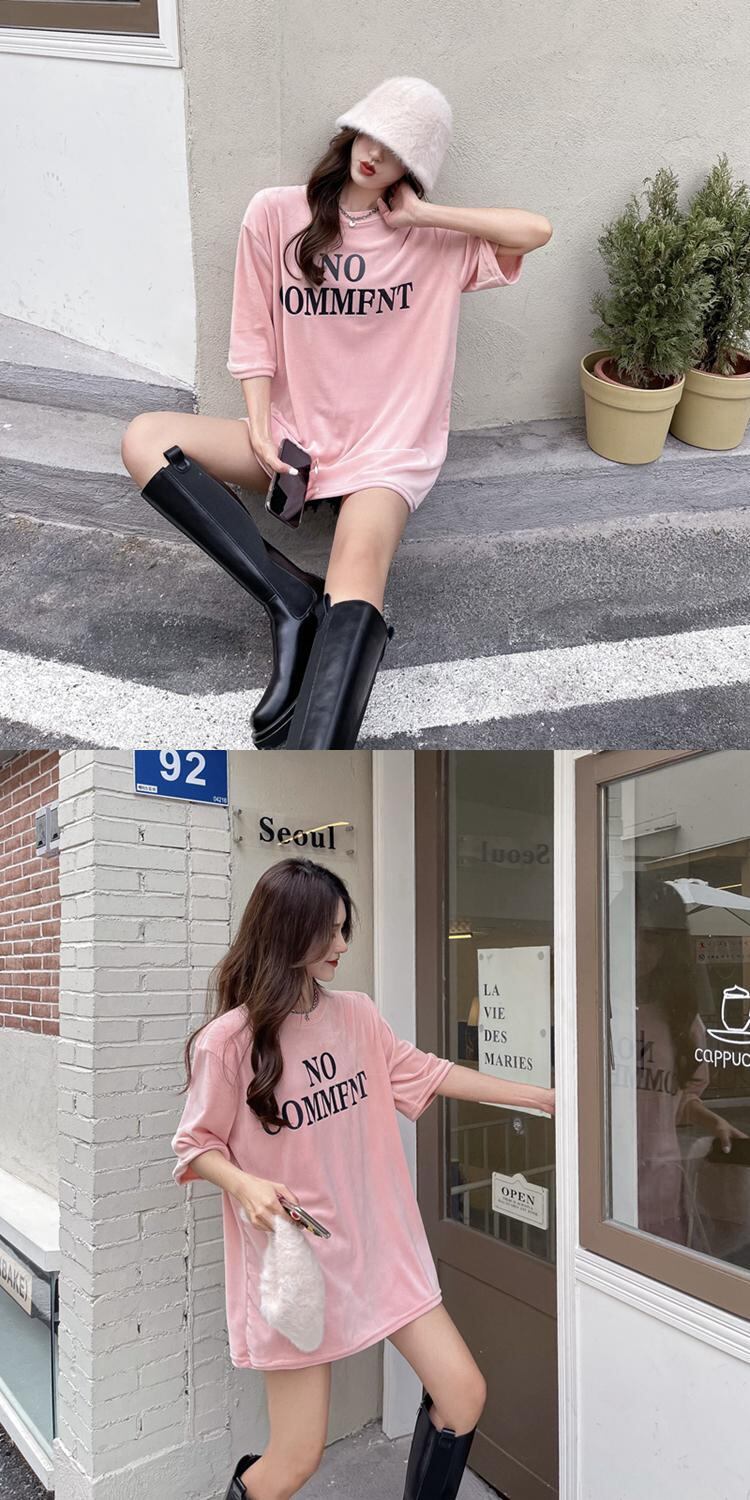 Tシャツ シャツ レディーススプリングブラックベルベットルーズトップス 春物 ブラックストロベリース28530096030
