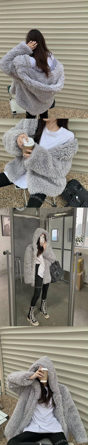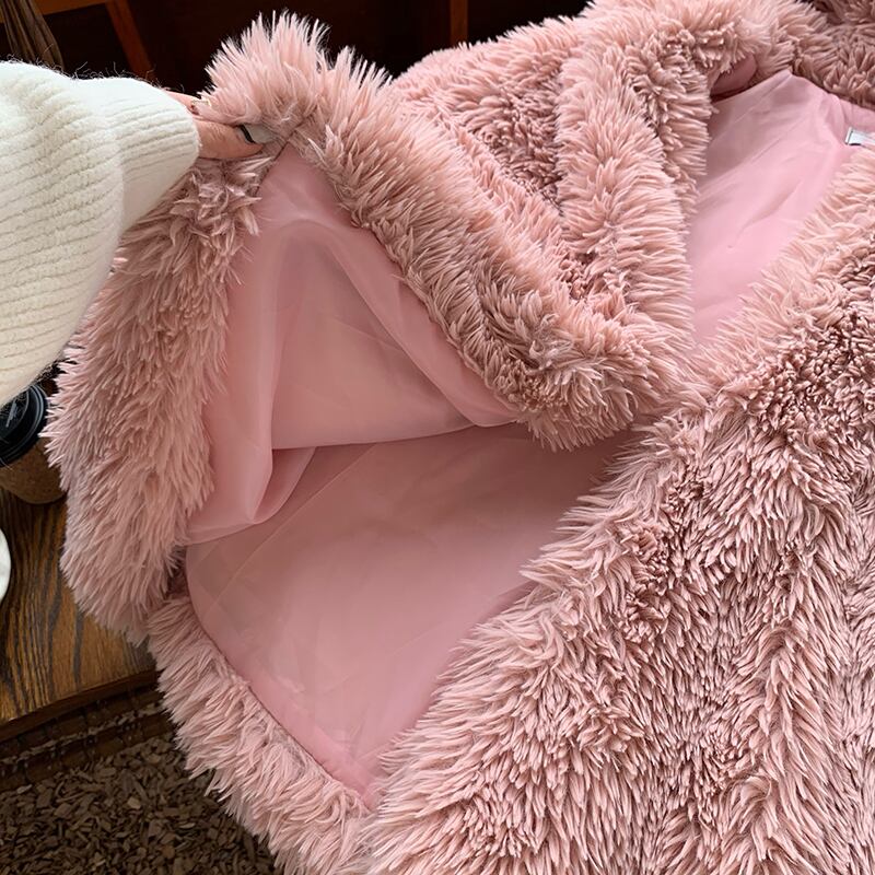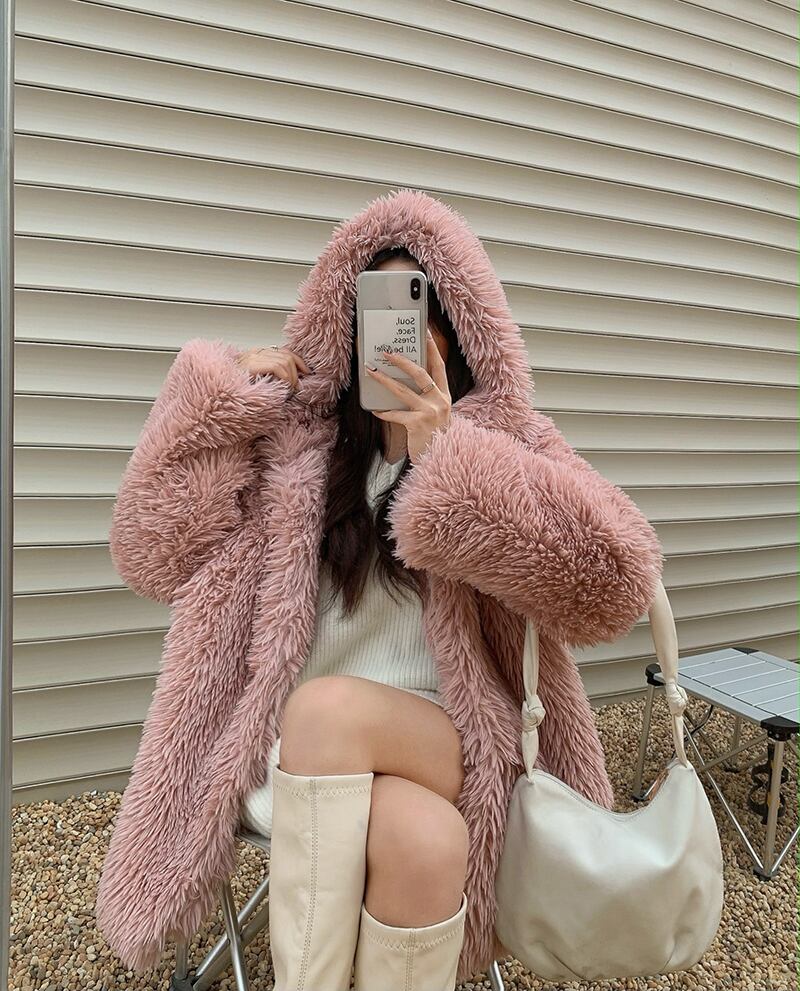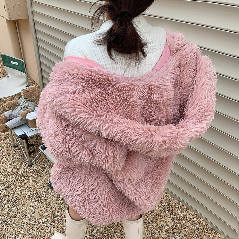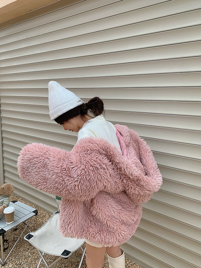 フェイクファーコート ルーズトップス オータムウィンター ピンク 秋物 冬物 ブラックストロベリース56096052892
