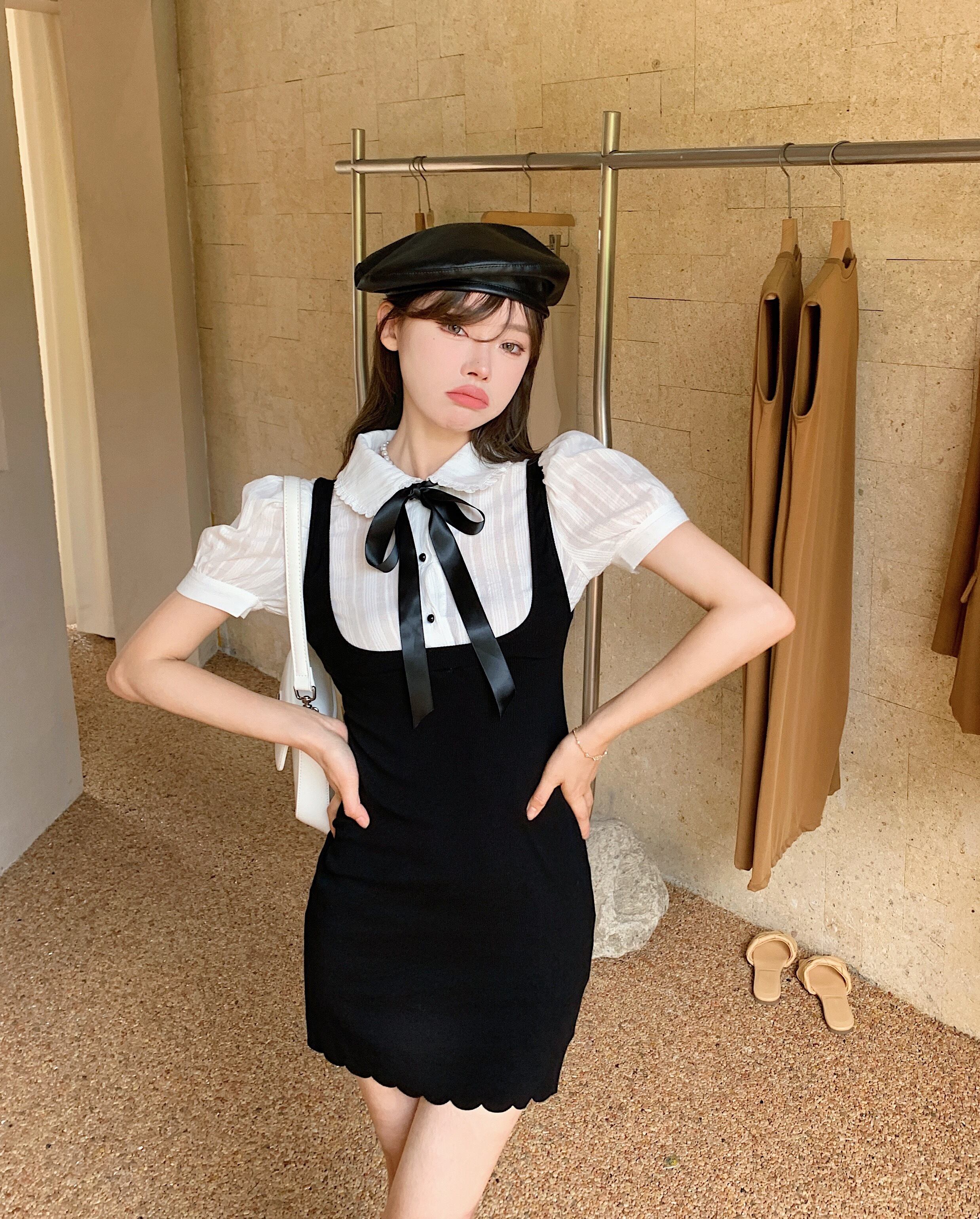 ニットドレス サマーショートスカート ブラックウェスト薄手 夏物 ブラックストロベリース4994474329