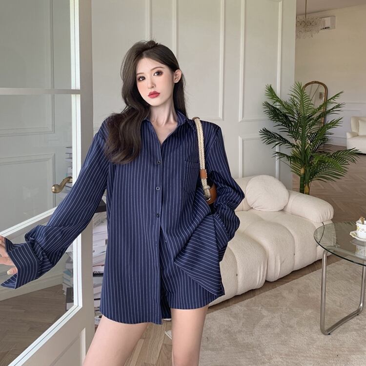 ストライプシャツ スタイルジャケット サマー薄手トップス ロング 夏物 ブラックストロベリース26411145014