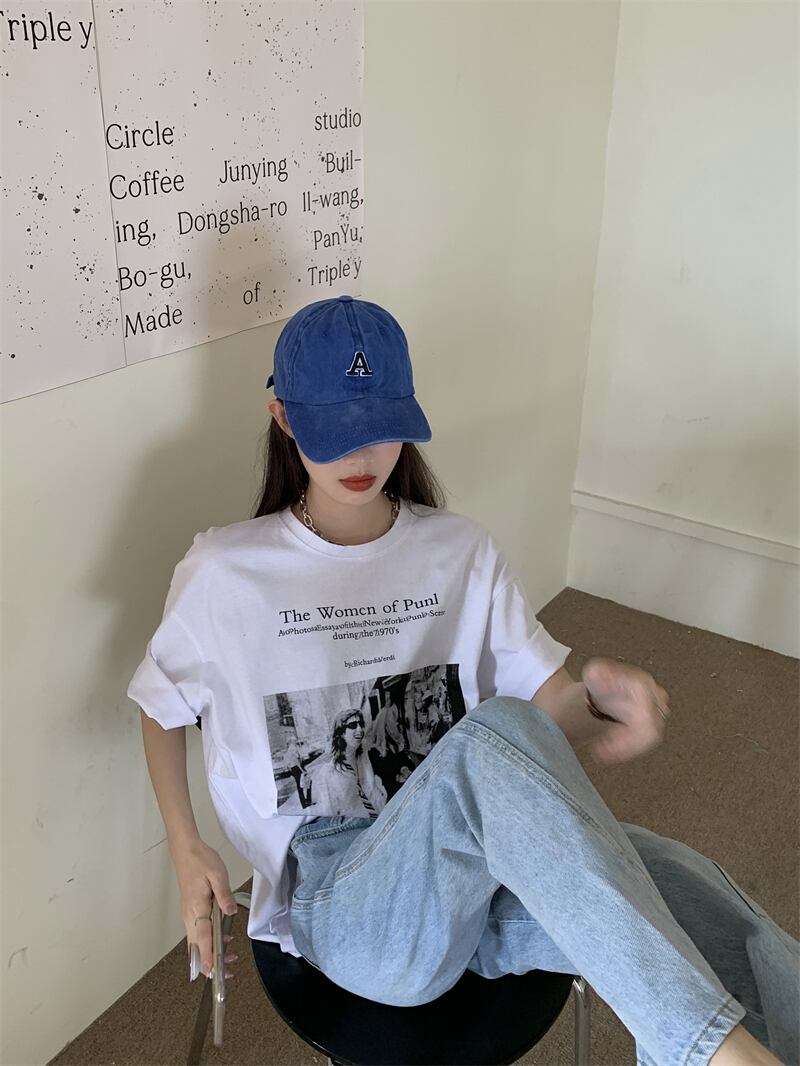 Tシャツ スタイル薄手プリント柄ルーズブラックトップス サマー 大人ガーリー スウィート キュート カジュアル 夏物 ブラックストロベリース803601412