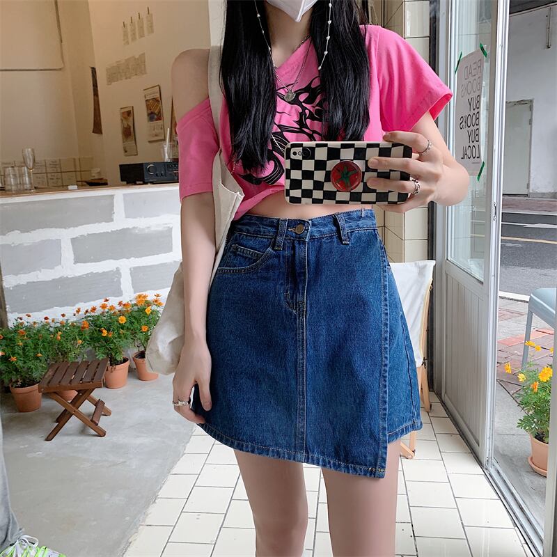スカート サマーショートハイウェストウェスト薄手Aライン 夏物 ブラックストロベリース87504117565