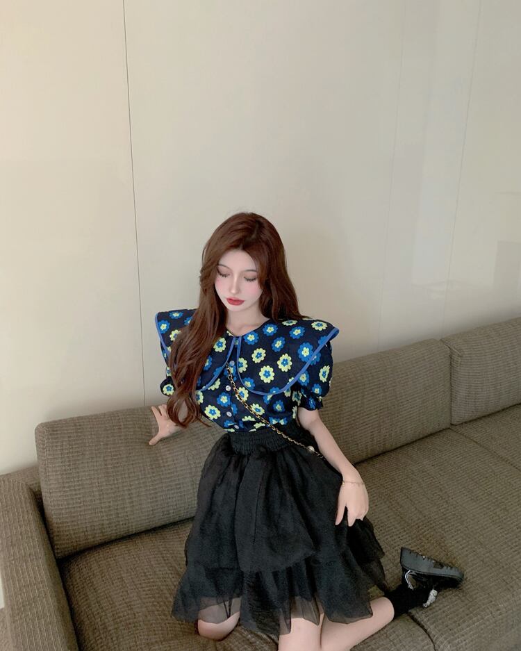 スカート ブラックメッシュハイウェストウェスト薄手Aラインショートサマー 夏物 ブラックストロベリース90902959415