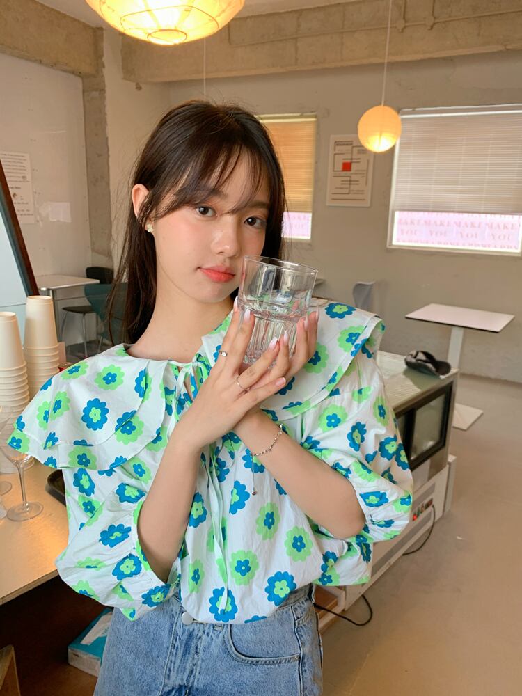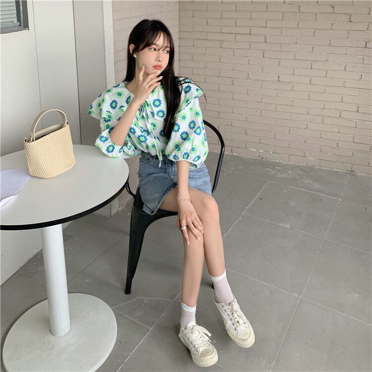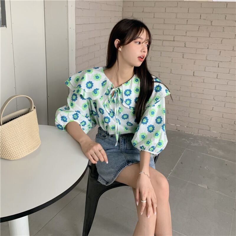 ブラックスタイルシャツ カラーグリーンフローラルブラウス 花柄 ブラックストロベリース9683778845