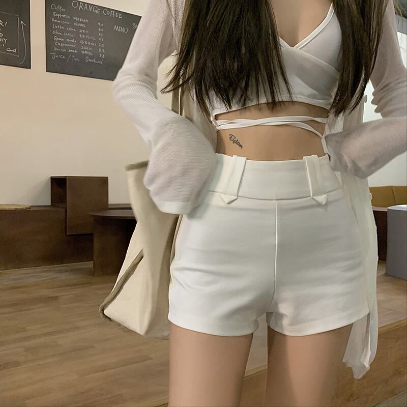 ブラックパンツ サマーハイウェストウェストスリムショーツ カジュアル 夏物 ブルマー ブラックストロベリース17084078883